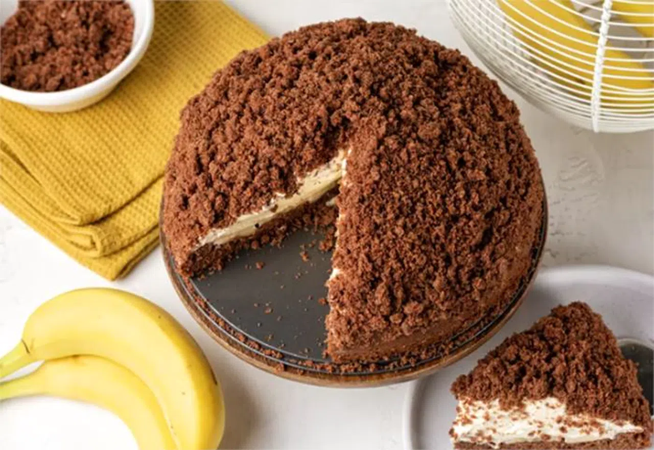 • Birleştirmek için, pişen kekinizi yuvarlak bir kalıp ile porsiyonlara ayırın. Kalan kenar kısımlarını robotta çekerek kum gibi olmasını sağlayın. Porsiyonlara ayırdığınız keklerin üzerine bir miktar krema sıkıp sıvayın, pütürlü kısımlarını düzeltip kum haline getirdiğiniz kekler ile kaplayın. Tüm kek tabanına ve kremaya aynı işlemi uyguladıktan sonra buzdolabına yerleştirip soğuk servis edin.
