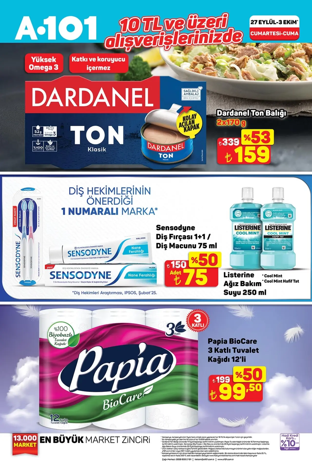 A101, sadece gıda ürünleriyle değil, aynı zamanda temizlik ve kişisel bakıma yönelik ürünlerde de geniş bir yelpaze sunuyor. Pril bulaşık deterjanı 4 kilogramlık paketiyle 149,90 TL'den, Tursil sıvı çamaşır deterjanı ise 2145 ml’lik ambalajıyla 119,00 TL'den tüketicilerin tercihine sunuluyor. Ayrıca, kişisel bakım alanında da Sensodyne diş macunu ve diş fırçası seti 75 TL’ye, Listerine ağız bakım suyu ise 250 ml'lik boyutuyla aynı fiyat üzerinden satışa sunuluyor. Bu durum, A101’in müşteri ihtiyaçlarını düşündüğünü ve farklı alanlarda kaliteli ürünler sağladığını gösteriyor.