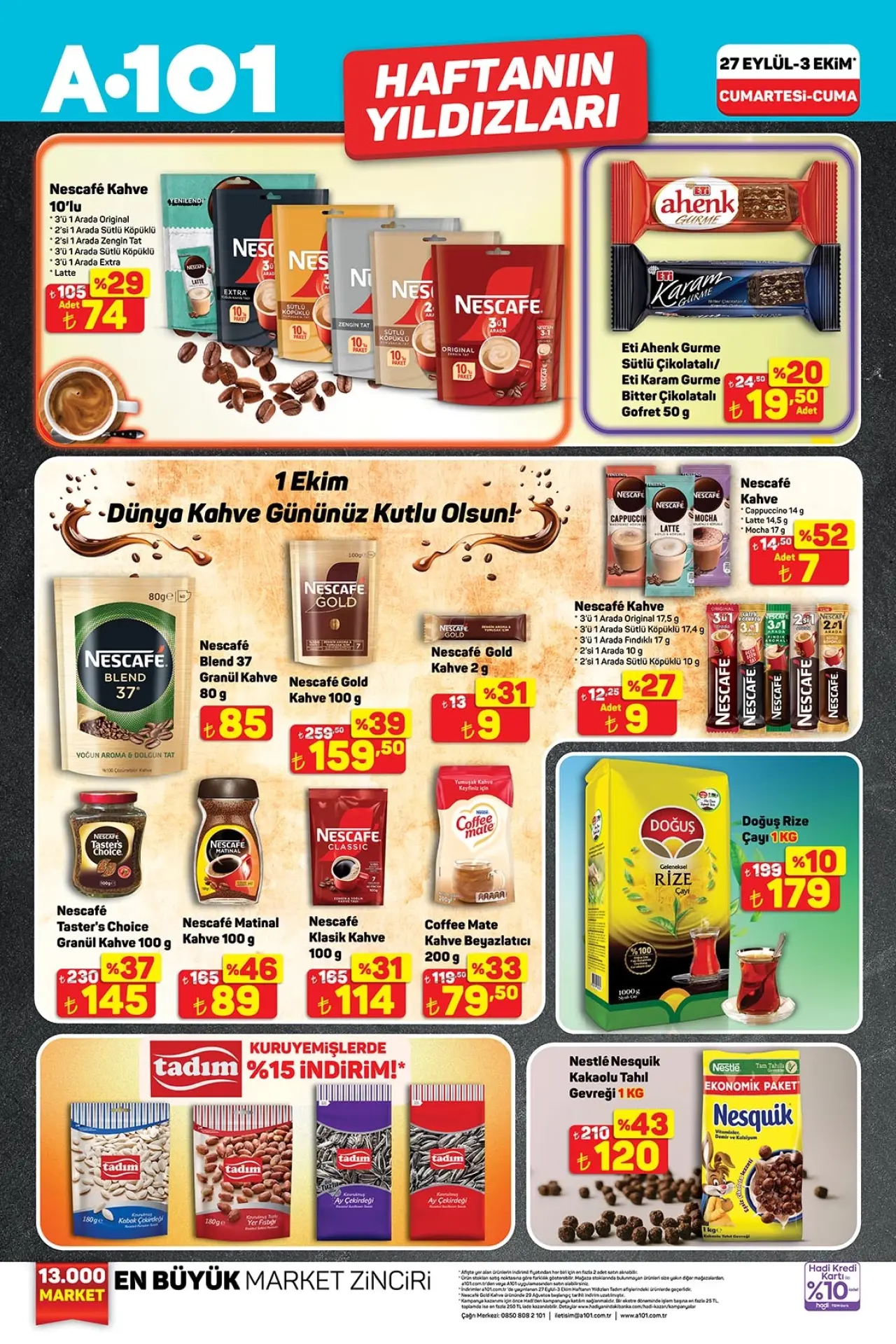 Katalogda yer alan atıştırmalıklar, A101’in dikkat çeken diğer bir kategorisi. Özellikle çikolata ve cips gibi ürünler, hem çocuklar hem de yetişkinler tarafından yoğun ilgi görüyor. Henk marka çikolatalı gofret 50 gramlık paket fiyatıyla 20,50 TL'ye alınıp değerlendirilebilirken, Nescafe kahve çeşitleri ise bireysel tercihleri karşılayacak şekilde birçok seçeneğe sahip. Nescafe Gold granül kahveden, farklı aroma ve boyutlarda klasik kahveye kadar çeşitleri 29,74 TL'den başlayan fiyatlarla raflarda yer alıyor. Böylece, hem atıştırmalık ihtiyaçlarınızı karşılayabilir hem de kahve keyfini uygun fiyatlarla yaşayabilirsiniz.