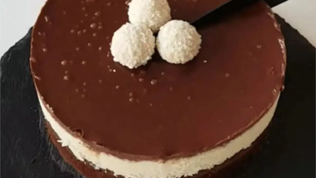 - Isınan kremaya çikolata kırılıp karıştırılır çikolata tamamen eriyince kremanın üzerine dökülüp yayılır.