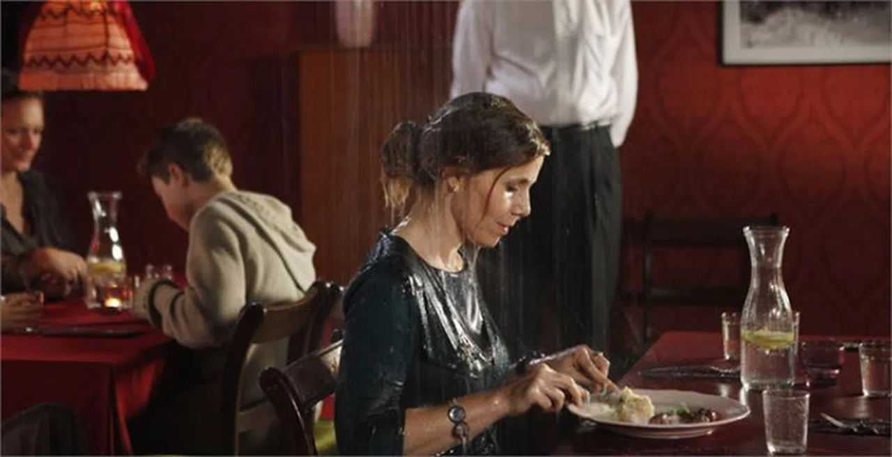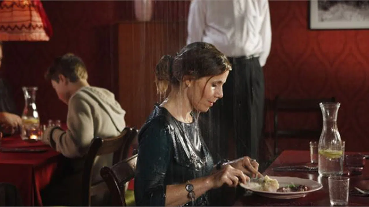 Bir hanım yastığındaki yağmurdan uyanır. Yataktan kalktığında yağmur onu takip eder. Gün süresince yağmuru yanında taşır.