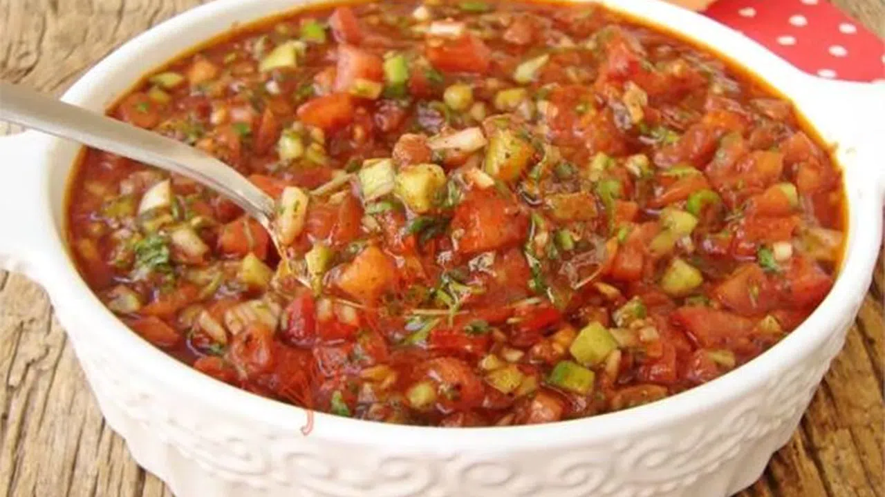 • Domates ve salatalığı küçük küpler şeklinde, maydanoz ve semizotunu ise ince ince doğrayın. Doğradığınız karışıma bütün baharatları ekleyin ve karıştırın. Vaktiniz varsa 1 saat buz dolabında bekletin. Servise hazır. Afiyet olsun.