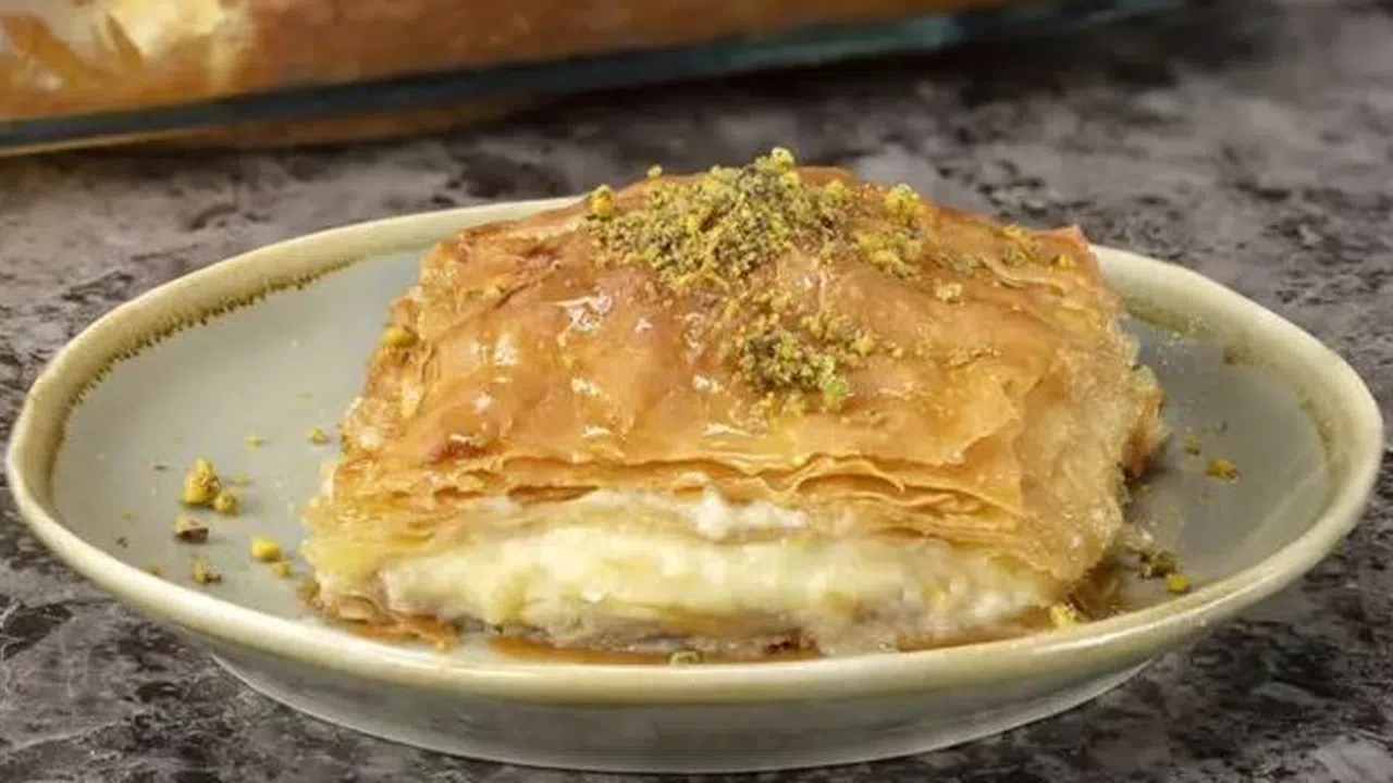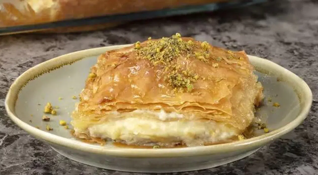 - Muhallebimizi yufkanın üzerine boşaltalım ve güzelce yayalım.