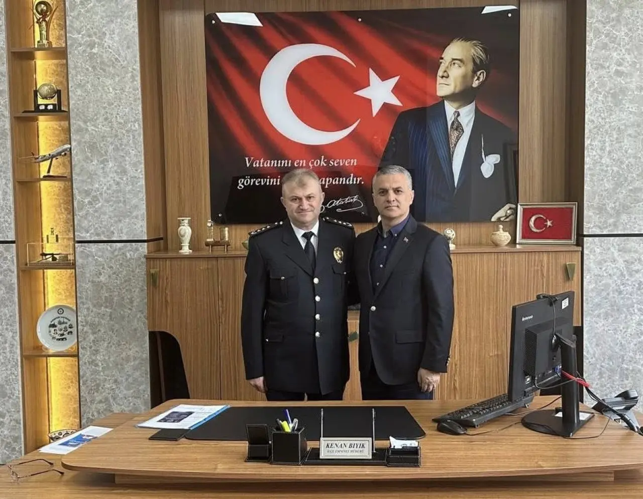 Gerçekleştirilen ziyarette, Emniyet Müdürü Kenan Bıyık’ın ilçede yürüttüğü güvenlik ve asayiş çalışmalarına ilişkin bilgi alışverişinde bulunuldu. Başkan Mustafa Bıyık, başarılı çalışmalarından dolayı Kenan Bıyık’ı tebrik ederek görevinde başarılarının devamını diledi.