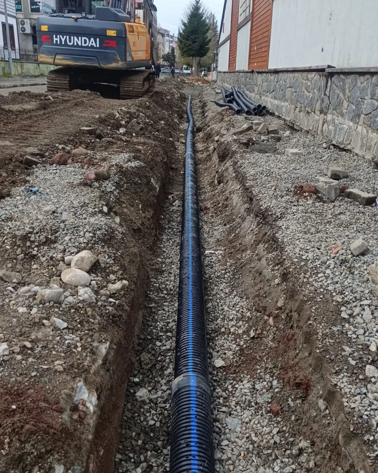 Altyapı ve üstyapı çalışmaları kapsamında Su ve Kanalizasyon ekipleri, Nazmi Alçın Caddesi’nde drenaj borusu bağlantı çalışmalarını tamamladı.