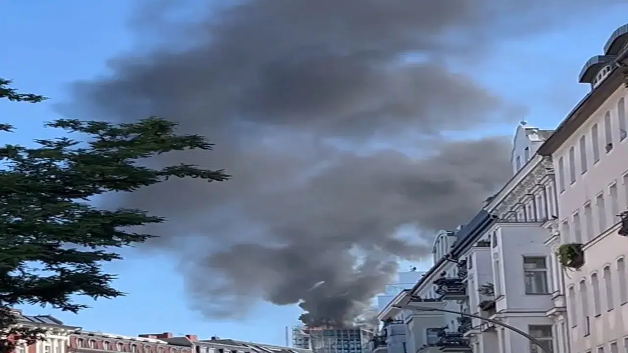 Berlin'deki inşaat halindeki binanın çatısında yangın, büyük patlamalar paniğe yol açtı