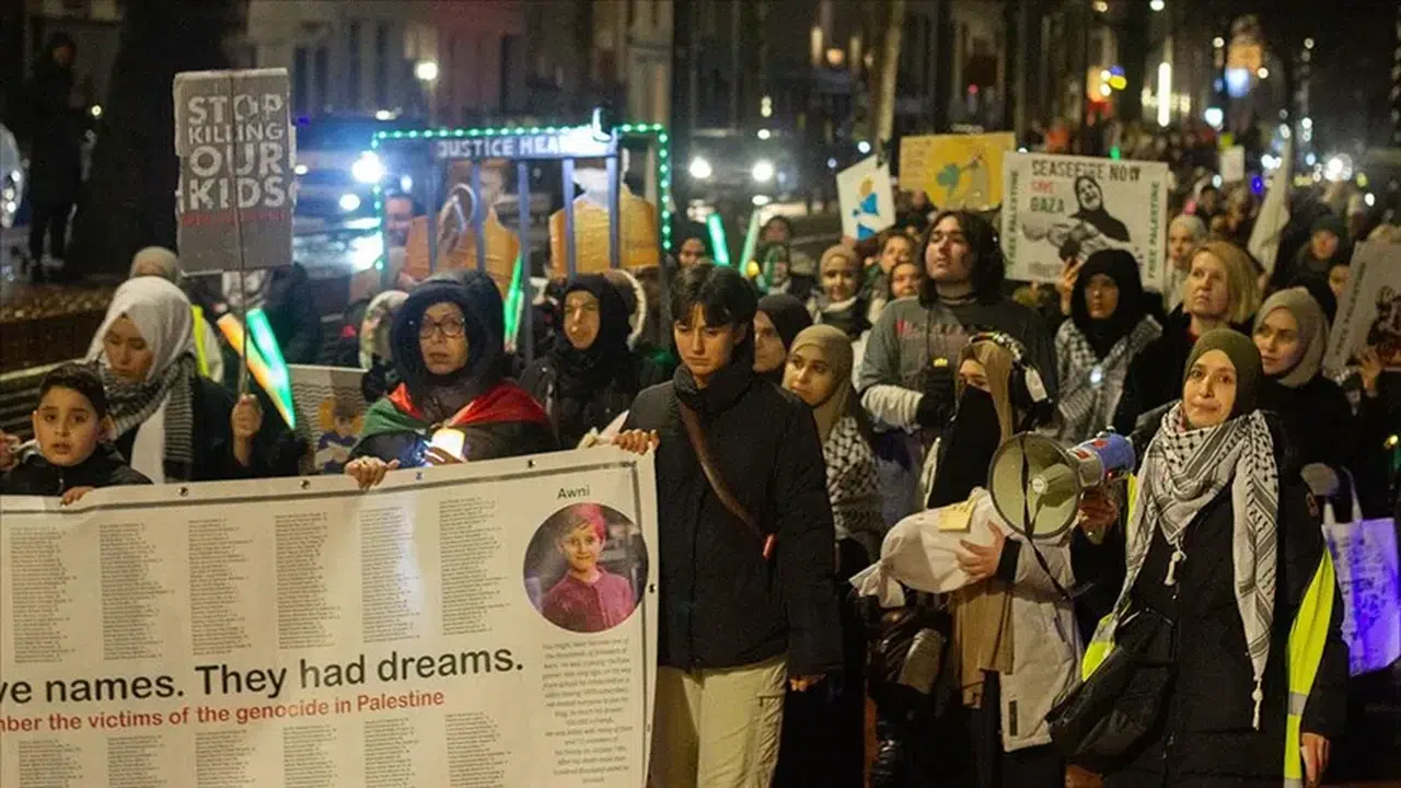 “Onların isimleri var, onların hayalleri vardı” pankartı ve "Özgür Filistin" ve "İnsanları öldürmeyi durdur" dövizleri taşıyan anneler, İsrail aleyhinde slogan attı.
