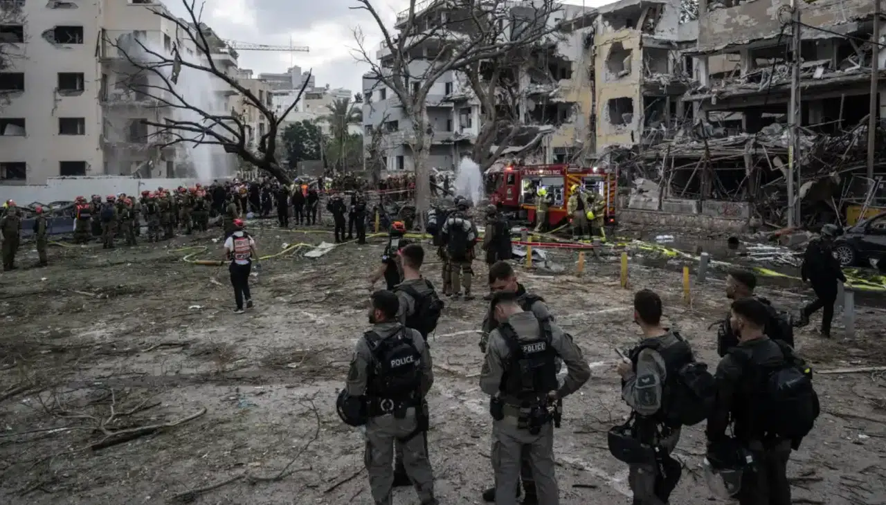 Bölgedeki kaynaklar, İran’ın misillemesi nedeniyle Büyük Tel Aviv olarak bilinen Gush Dan ve çevresinde sirenlerin çaldığını aktardı. Tel Aviv ve çevresinde şiddetli patlama sesleri duyuldu. İsrail polisi, Tel Aviv’de bir yola füzenin isabet ettiğini ve patlamanın şiddetiyle çevrede çok sayıda bina ve araçta hasar oluştuğunu açıkladı. Füze isabet eden yolun yanı sıra üç bölgeye daha füze parçaları ve şarapneller düştü.