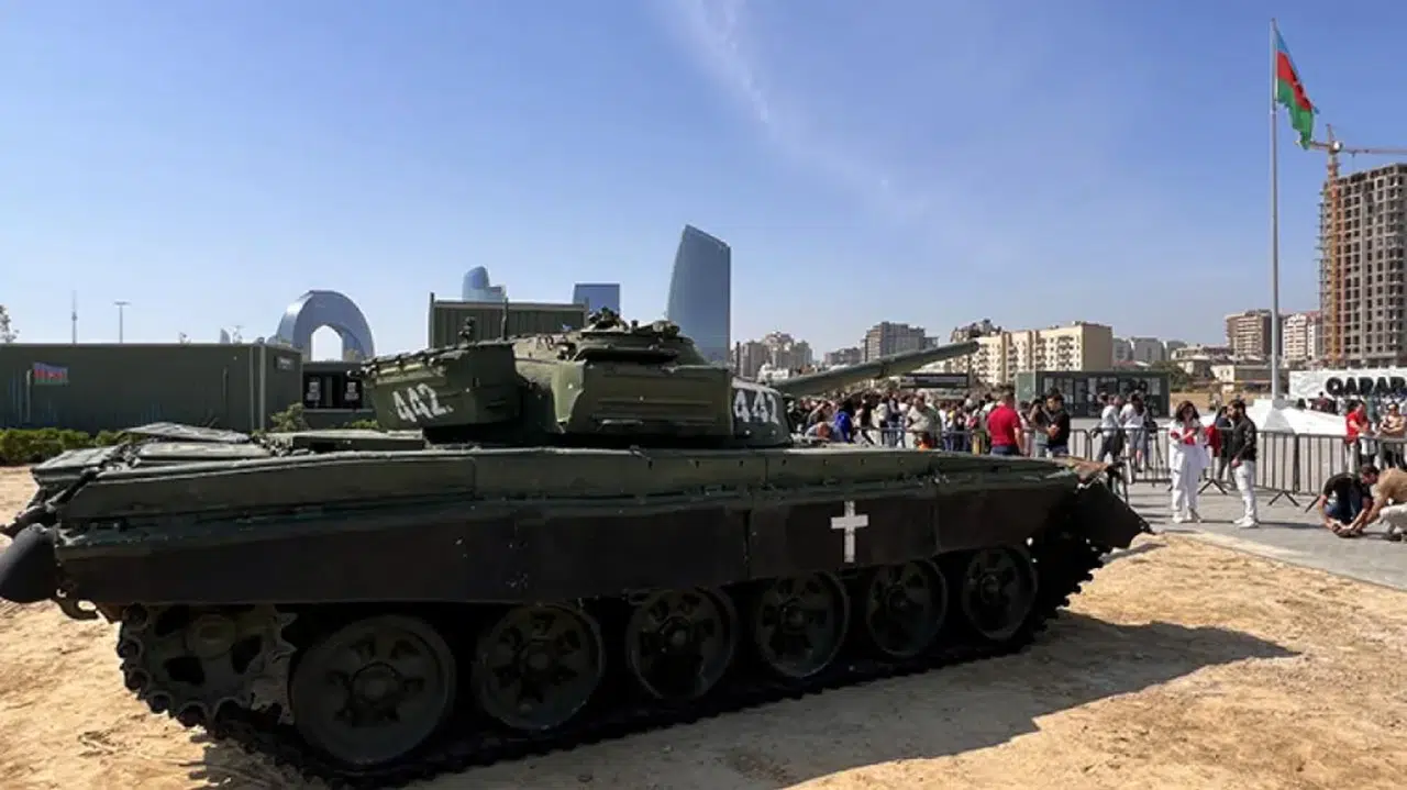 Hazar Denizi kıyısında 5 hektar alana kurulu "Savaş Ganimetleri Parkı" gerçek bir savaş alanını anımsatıyor. Alanda, 2. Karabağ Savaşı'nda imha edilen ve çalışır durumda ele geçirilen tanklar, zırhlı araçlar, top ve füze sistemleri, personel taşıyıcılar ve diğer araçlar sergileniyor.