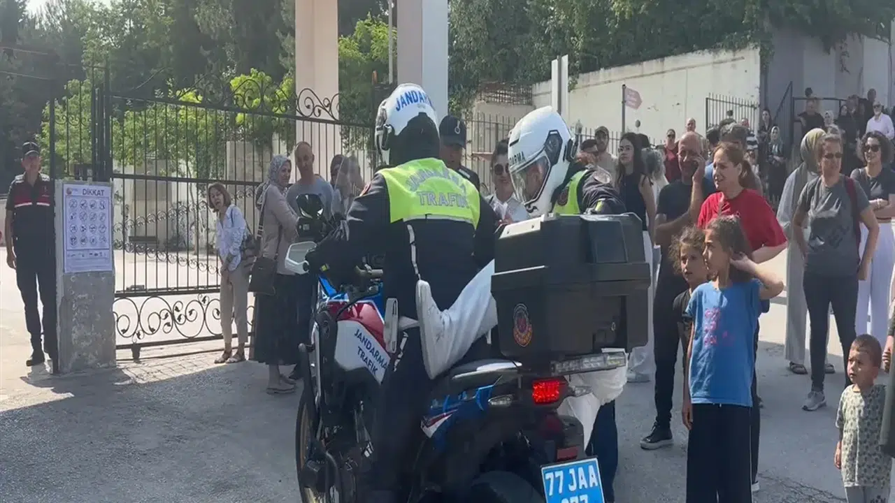 Mehmet Akif Ersoy Ortaokulu'nda sınava giren adaylardan biri de geç kalma telaşı yaşadı. Sınava gireceği okula gitmek üzere minibüs beklerken, jandarma ekiplerine denk gelince geç kalacağını söyleyen adayı, jandarma trafik ekipleri motosikletle sınava yetiştirdi. Kapıların kapanmasına son 1 dakika kala okula gelen öğrenci, vakit kaybetmemek için başında kask, üzerine jandarma montuyla binaya koşarak girdi. O anlar kameraya yansırken, okul çevresinde bekleyen aileler, jandarma personelini alkışlayarak, teşekkür etti.