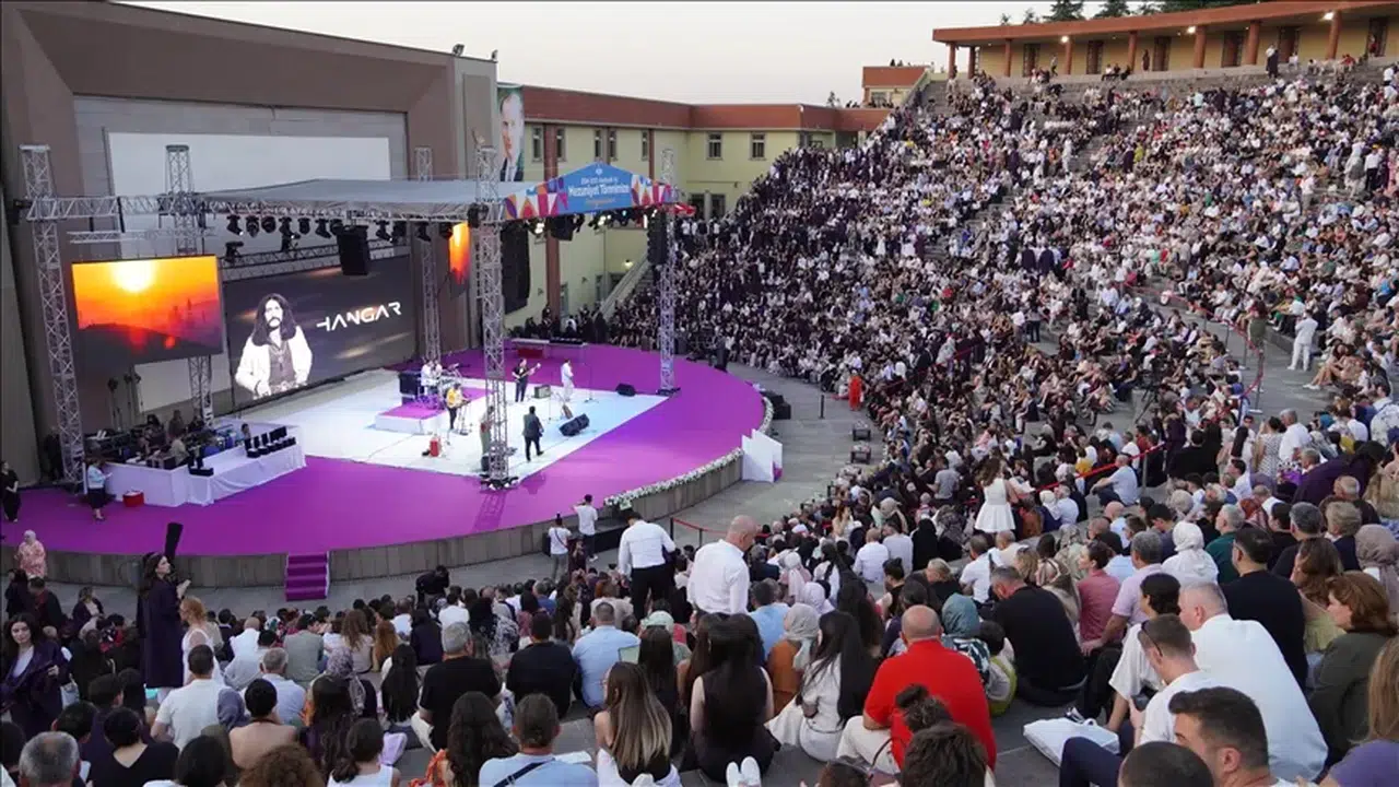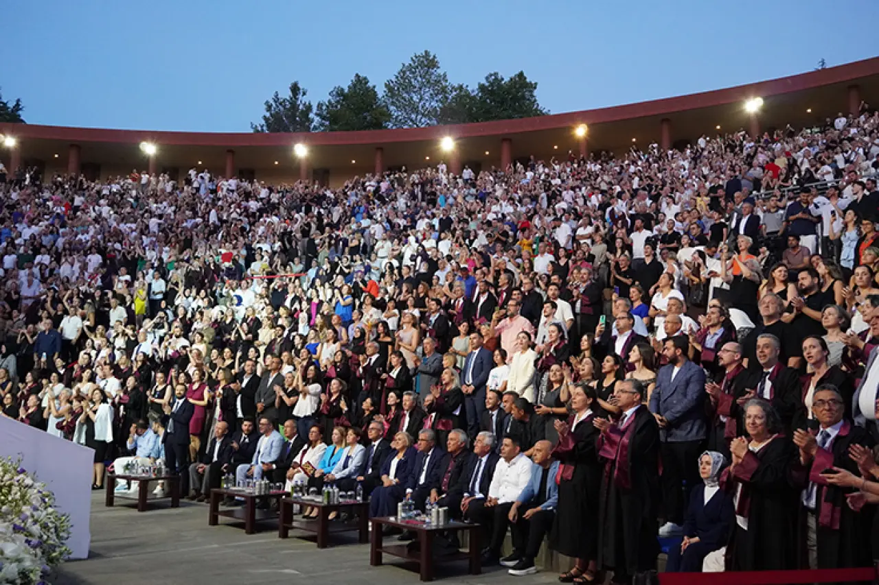 "Bugün 10 bin kişilik bir açık hava tiyatrosunda törenimizi gerçekleştiriyoruz. Aileler, kardeşler, şehir dışından gelen misafirlerle birlikte çok özel bir anı paylaşıyoruz. Öğrencilerimizin hayallerine ulaşmalarını, gelecek planlarını gerçekleştirmelerini diliyorum. Bu gençler bizim hepimizin ve onlar Türkiye'nin önemli yerlerinde görev alacaklar."