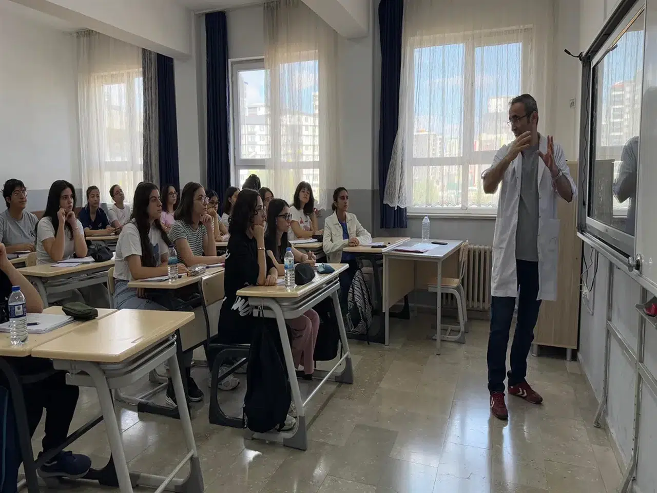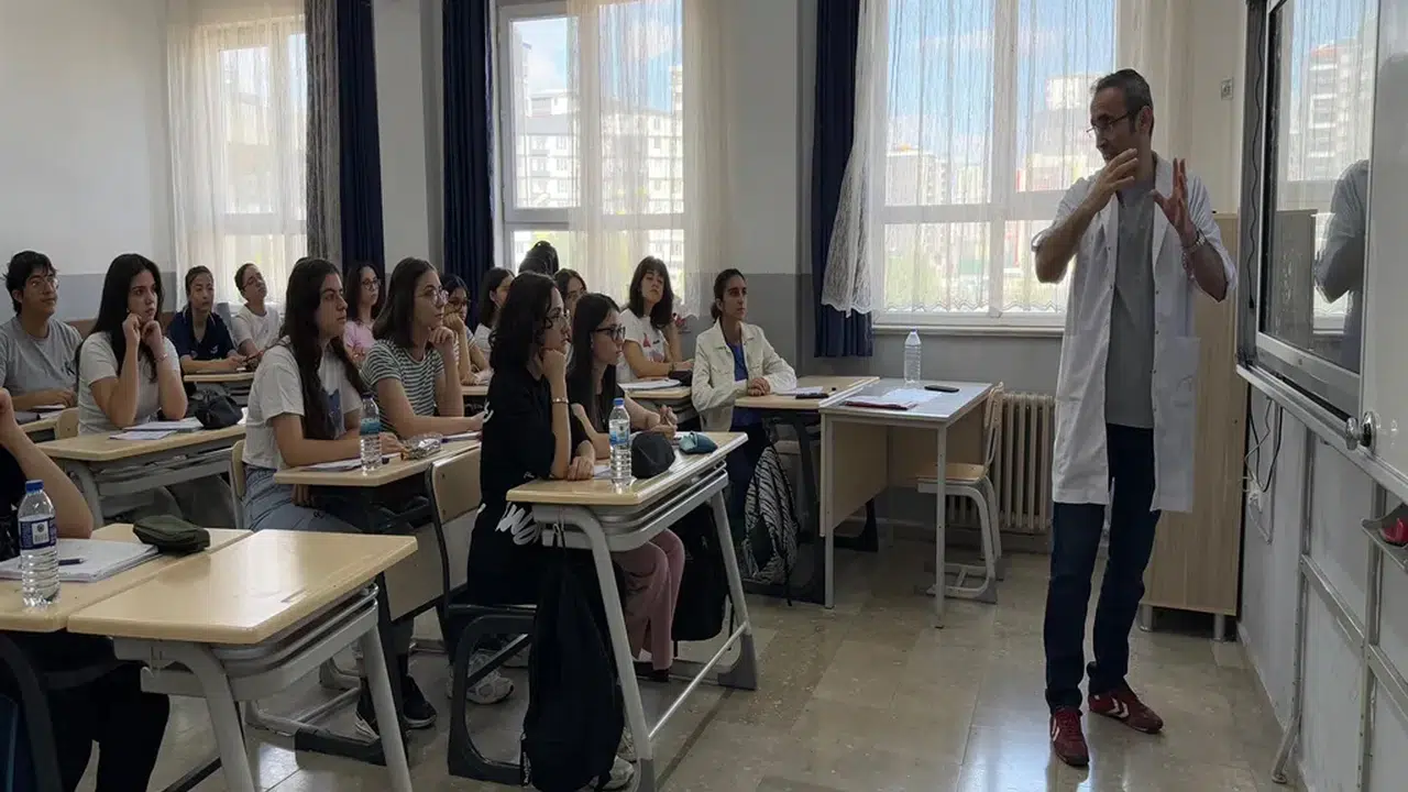 Genç, isteyen öğrencilerle akademik çalışmaların yanı sıra görsel sanatlar, spor, müzik alanlarında da çalışmalar yapıldığını söyleyerek, "Bunların da kursları var. İsteyen öğrencilerimize isteyen öğretmenlerimiz aracılığıyla bunların da dersleri açılmakta. Bizim ve Bakanlığımızın hedefi, öğrencinin sağ ve sol lobunu aktif hale getirmek, öğrenmeyi kalıcı kılmak. Bu da öğrencilerimizi başarılı bir hale getirmektedir. Yaz döneminden sonra eğitim öğretim başladığında da eğitim öğretimin 1'inci ve 2'nci döneminde de Bakanlığımızın uyguladığı kurslarımız devam etmekte. Öğrencilerimiz günde 8 saat derslerinin dışında okul dağıldıktan sonra yine kişisel müracaatlarıyla 2'şer saat okulumuzda fizik, kimya, biyoloji, matematik, edebiyat derslerinden de kurslara kalabiliyorlar. Bu eğitim öğretim yılı boyunca devam ediyor. Bu da öğrencilerimize Bakanlık tarafından YKS'ye hazırlanma aşamasında güzel bir olanak oluşturmaktadır" diye konuştu.