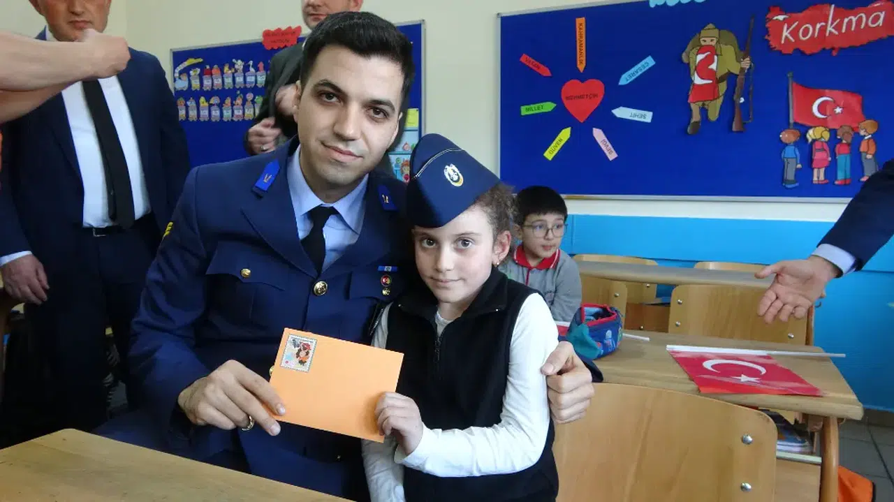 Salarha beldesindeki Şehit Nedim Çalık İlkokulu’nu ziyaret eden askeri personel, öğrencilerden mektupları teslim aldı.