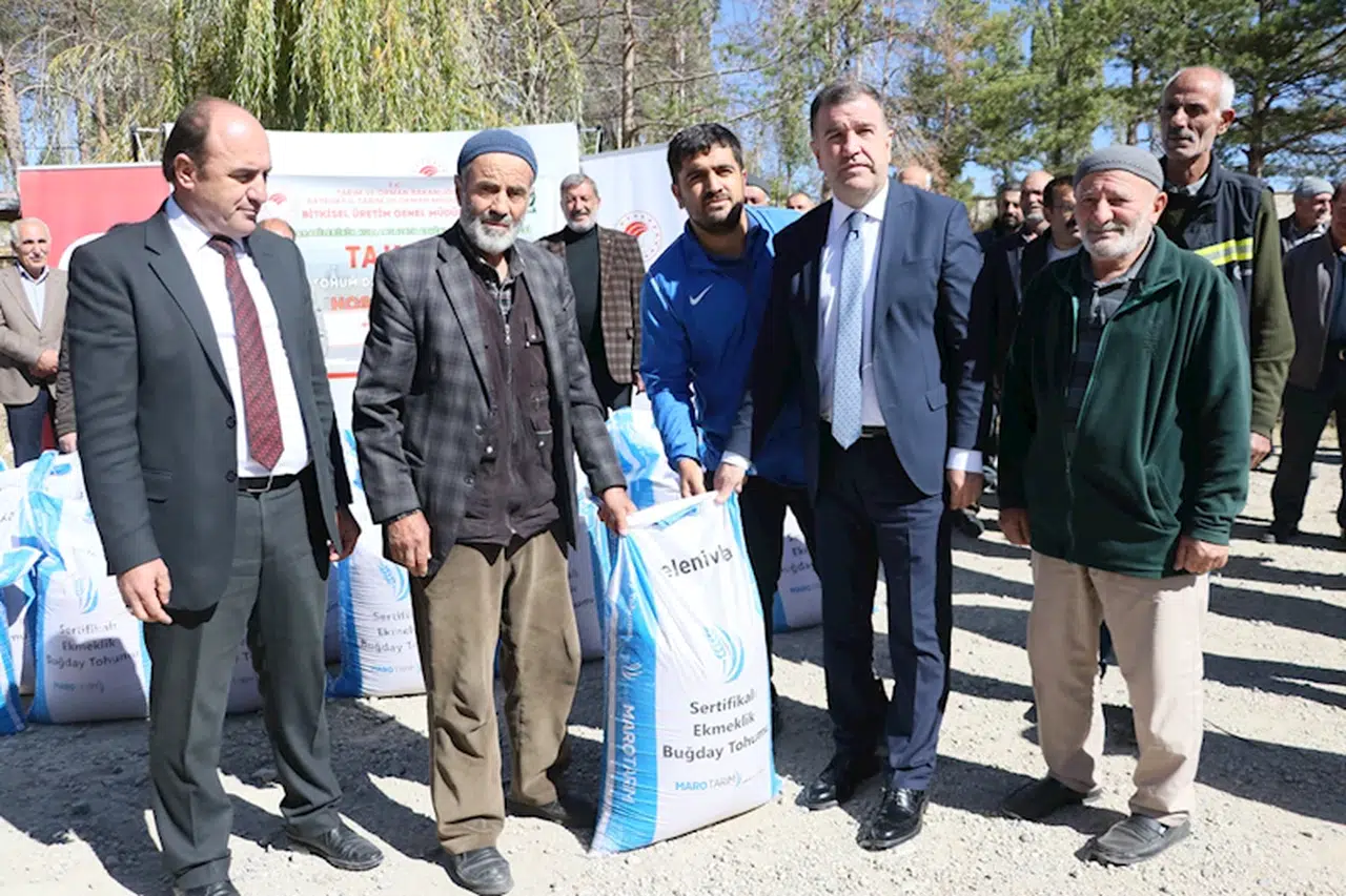 Konuşmaların ardından çiftçilere 330 ton sertifikalı buğday tohumunun dağıtımı yapıldı.