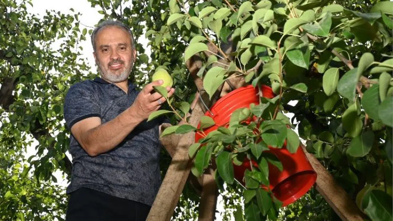 Bursa'da armut hasadı yapan çiftçiye Başkan Aktaş'tan yerinde ziyaret