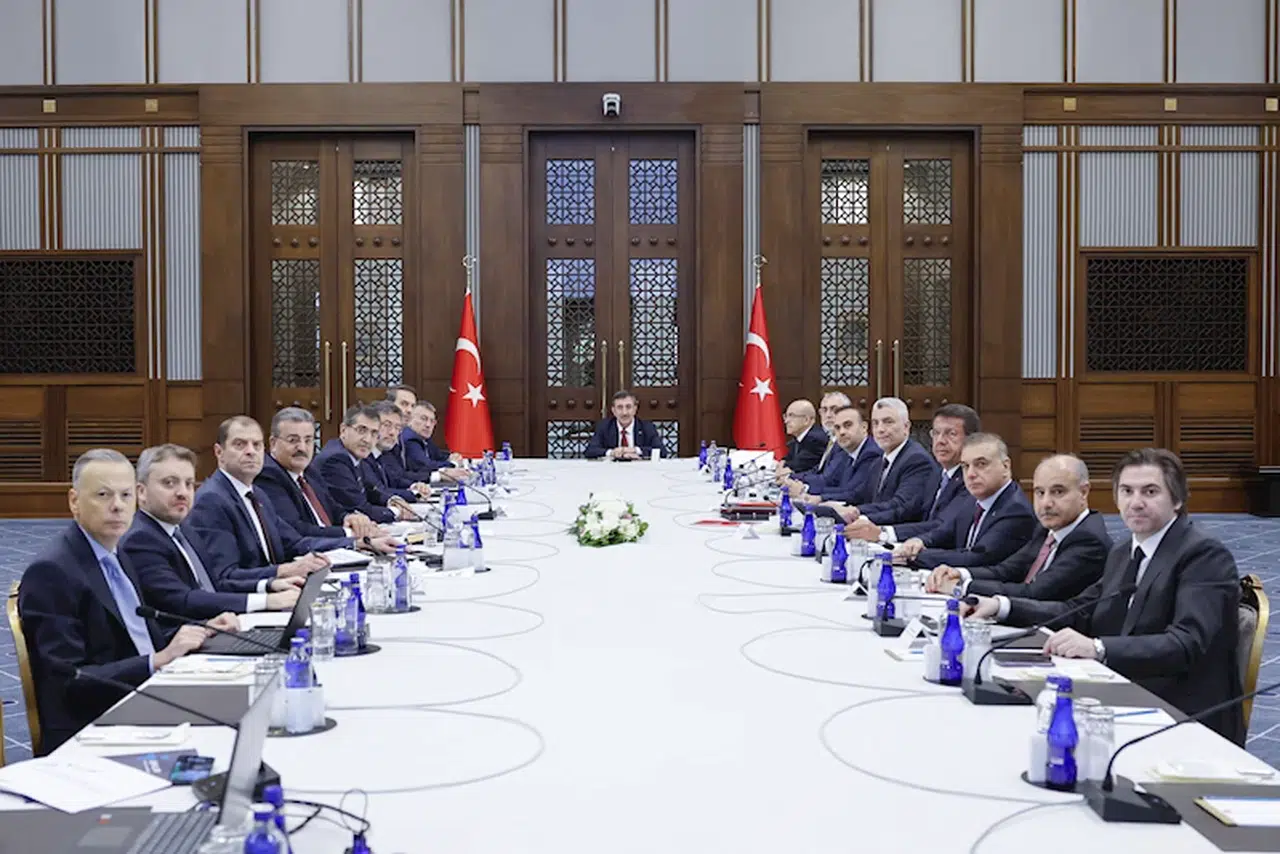 Ekonomi Koordinasyon Kurulu, Cumhurbaşkanı Yardımcısı Cevdet Yılmaz başkanlığında Cumhurbaşkanlığı Külliyesi'nde toplandı. Toplantıya, Çalışma ve Sosyal Güvenlik Bakanı Vedat Işıkhan, Enerji ve Tabii Kaynaklar Bakanı Alparslan Bayraktar, Hazine ve Maliye Bakanı Mehmet Şimşek, Sanayi ve Teknoloji Bakanı Mehmet Fatih Kacır, Tarım ve Orman Bakanı İbrahim Yumaklı, Ticaret Bakanı Ömer Bolat, AK Parti Grup Başkanı Abdullah Güler, Genel Başkan Yardımcısı Nihat Zeybekci, Cumhurbaşkanlığı Strateji ve Bütçe Başkanı İbrahim Şenel ile ilgili kurum ve kuruluşların temsilcileri katıldı. Yaklaşık 2,5 saat süren toplantının ardından yazılı açıklama yapıldı.