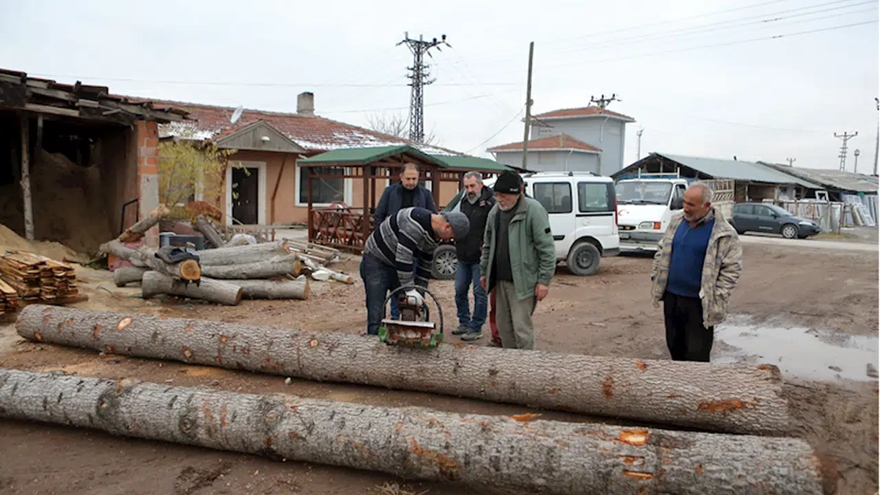 Çorum Sanayi Sitesi'nde marangozluk yapan Kazım Çolak da yeni çam kabuğu soyma makinesini atölyesinde denedi.