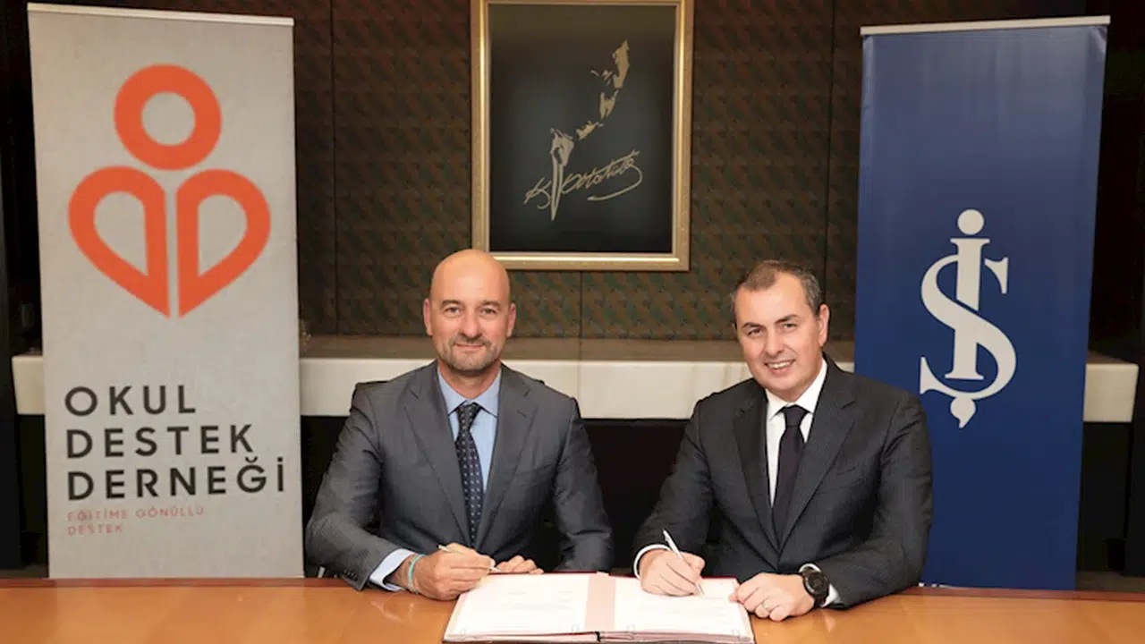 Yeni eğitim öğretim döneminde iş birliğinin kapsamını genişletmek üzere İş Bankası Genel Müdürü Hakan Aran ve Okul Destek Derneği Kurucusu Orkun Oğuz'un katılımıyla imza töreni gerçekleştirildi.