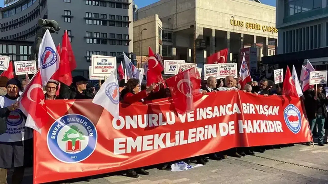 Altındağ ilçesindeki Ulus Zafer Anıtı önünde toplanan sendika üyeleri, 'onurlu ve insanca bir yaşam emeklilerin de hakkıdır' yazılı pankart açarak, 'Hükumet emekliyi enflasyona ezdirme', 'Emekliyiz, emektarız, haklıyız' sloganları attı.