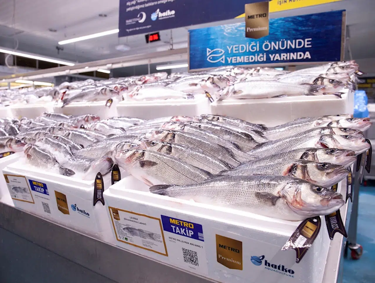 Metro Premium levrek ve çipuraların etiketinde yer alan QR kod sayesinde hasat tarihi, son kullanma tarihi, parti no, yetiştirildiği yer, kuluçkahane, yem, tedarikçi adı, gıda güvenliği sertifikası, ürün analiz bilgisi, besin değerleri, Türkçe ve Latince adı olmak üzere toplam 12 kriterde yüzde 100 izlenebilirlik sağlanıyor.