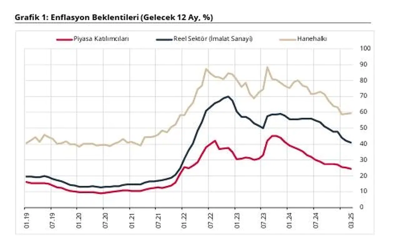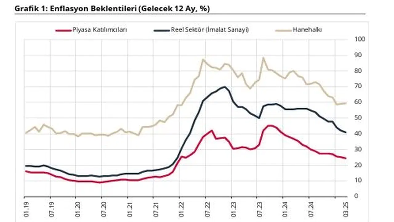 Piyasa katılımcıları ve reel sektörün enflasyon beklentisi azaldı, hanehalkının arttı