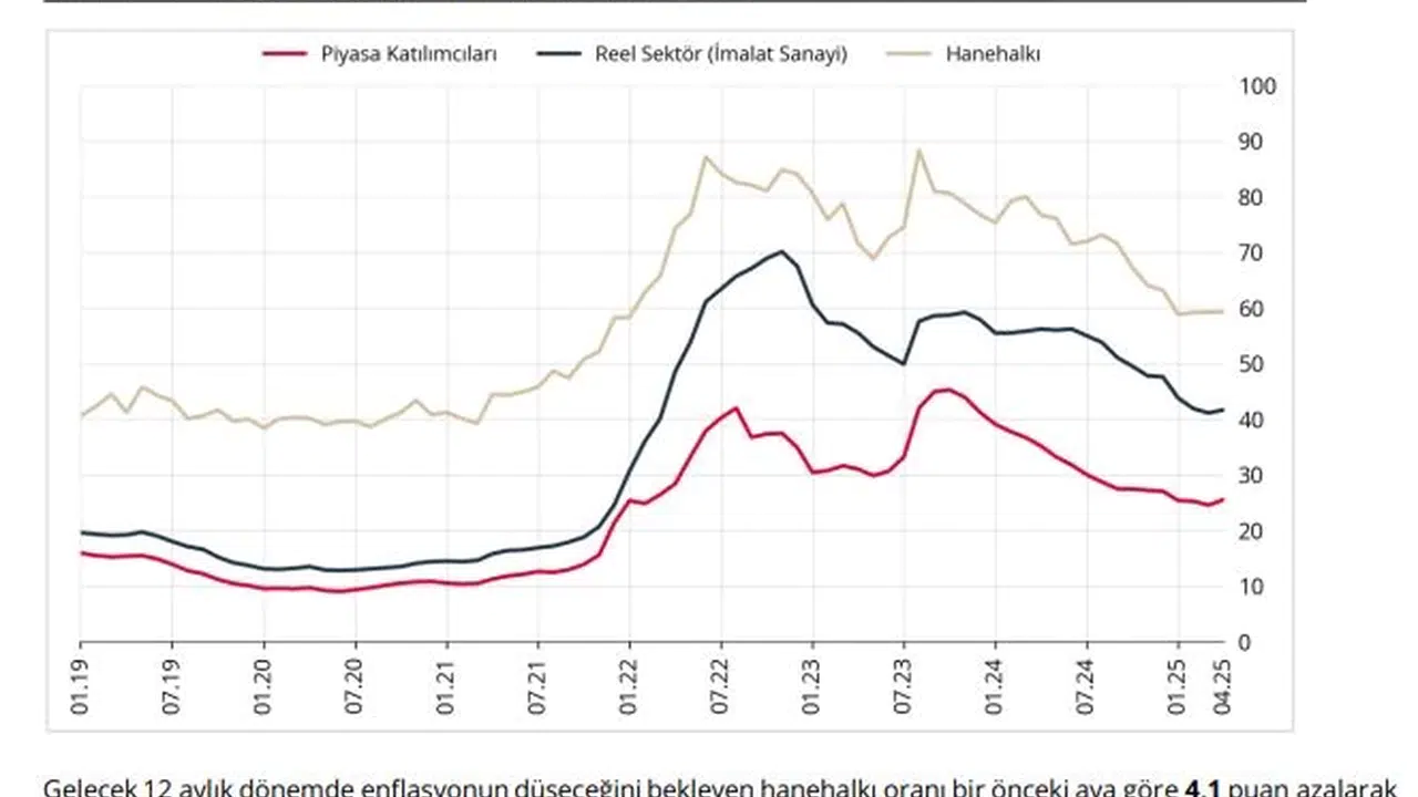 Caner ÜNVER/ANKARA, (DHA)- TÜRKİYE Cumhuriyet Merkez Bankası (TCMB), nisan ayında 12 ay sonrası enflasyon beklentilerinin piyasa katılımcıları ve reel sektör için arttığını, hanehalkı içinse değişmediğini açıkladı.