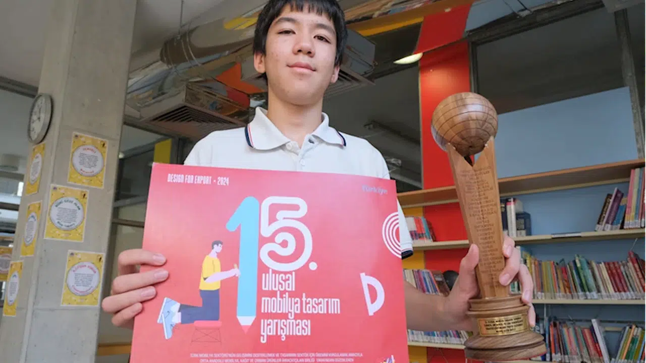 İSTANBUL (AA) - TED Ankara Koleji 8. sınıf öğrencisi Kerem Aksoy, 15. Ulusal Mobilya Tasarım Yarışması'nda "İlkokul, Ortaokul ve Lise Öğrencilerini Yaratıcı Çözümlere Teşvik Kategorisi"nde hazırladığı tasarımıyla "Madeş Altın Ödülü" kazandı.