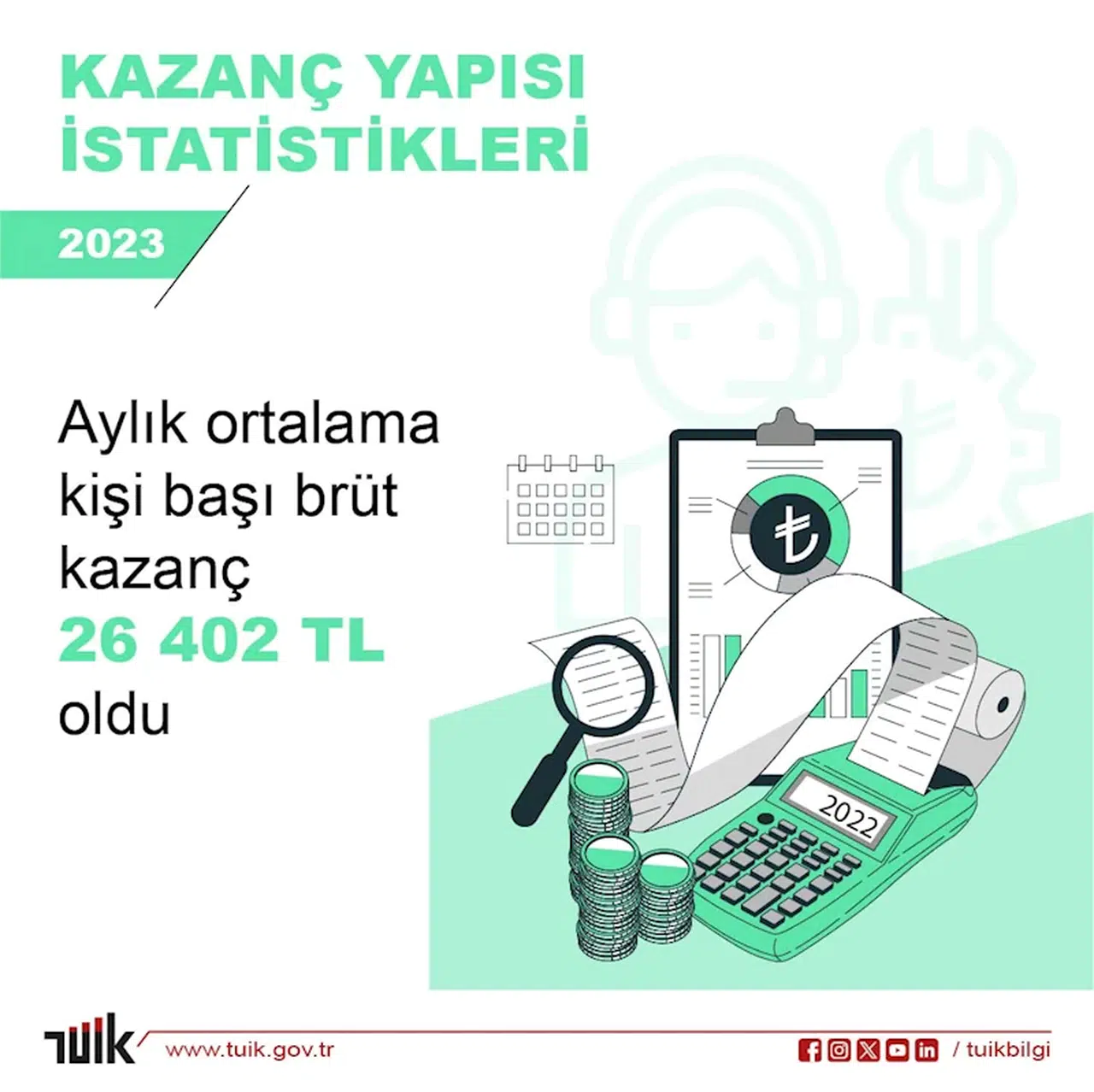 TÜİK: 2023'te aylık kişi başı brüt kazanç 26 bin 402 lira oldu