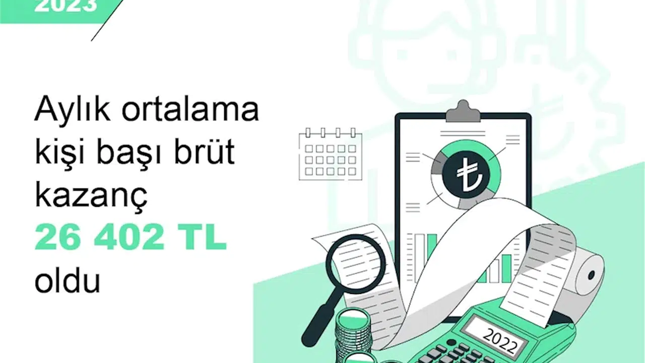 Caner ÜNVER/ANKARA, (DHA)- TÜRKİYE İstatistik Kurumu (TÜİK), 2023 yılında aylık ortalama kişi başı brüt kazancın 26 bin 402 TL olarak gerçekleştiğini açıkladı.