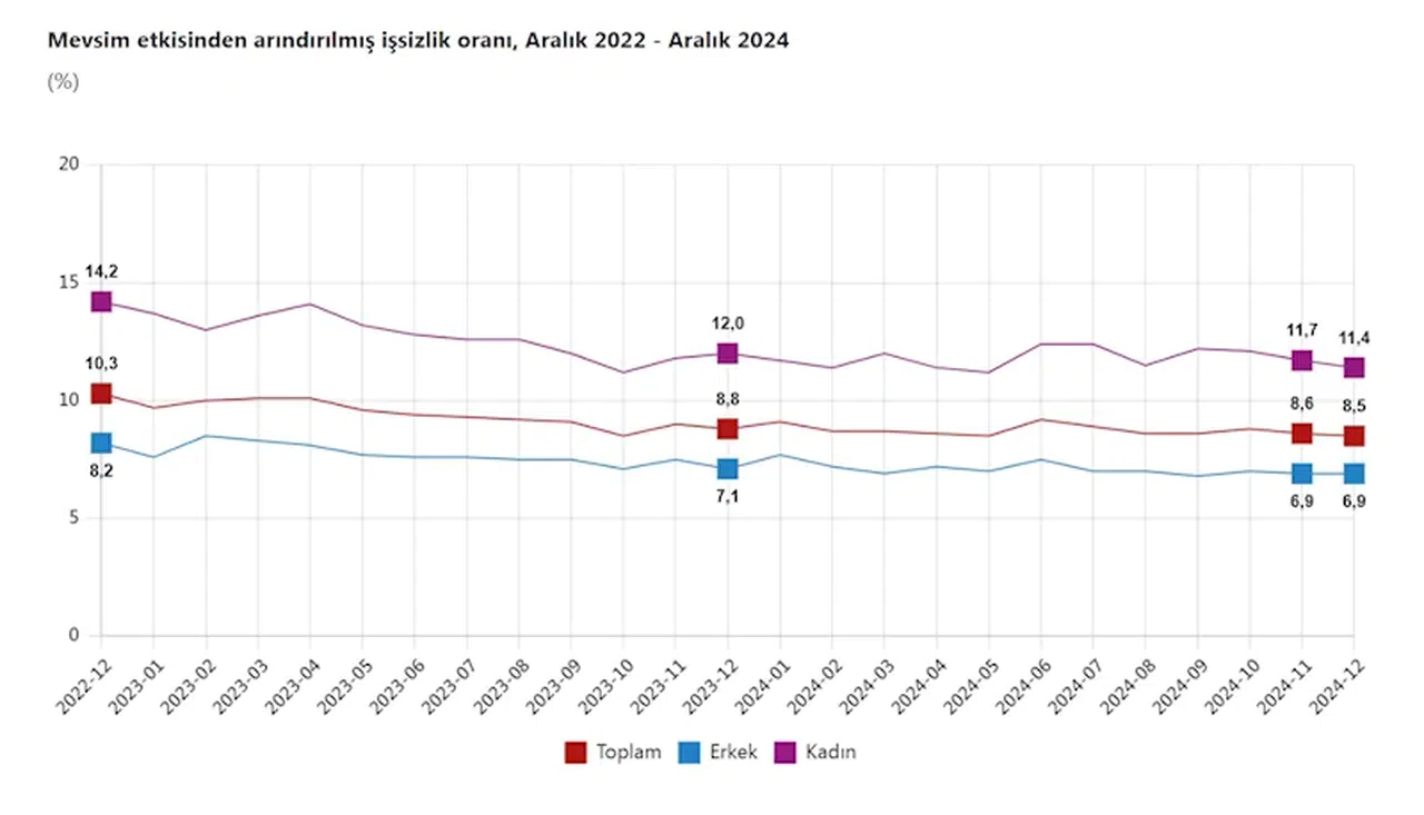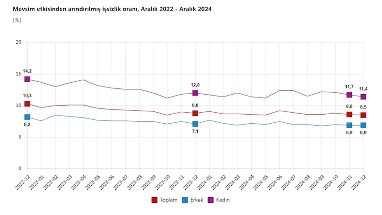 TÜİK: Aralık ayında işsizlik oranı yüzde 8,5 oldu