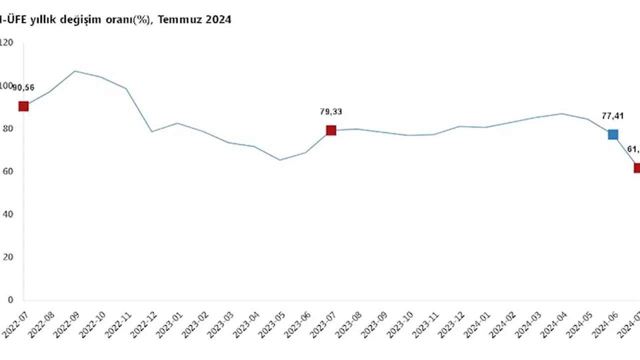TÜİK, Temmuz 2024 dönemine ilişkin hizmet üretici fiyat endeksi verilerini açıkladı. Buna göre; hizmet üretici fiyatları, temmuz ayında bir önceki aya göre yüzde 4, bir önceki yılın aralık ayına göre yüzde 43,48, bir önceki yılın aynı ayına göre yüzde 61,77 artış ve 12 aylık ortalamalara göre yüzde 79,05 arttı.