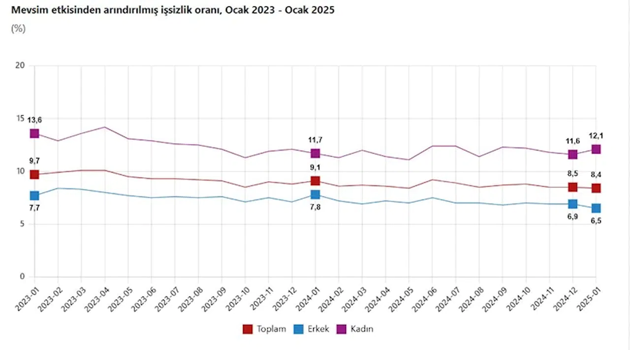TÜİK: İşsizlik oranı ocakta yüzde 8,4'e geriledi