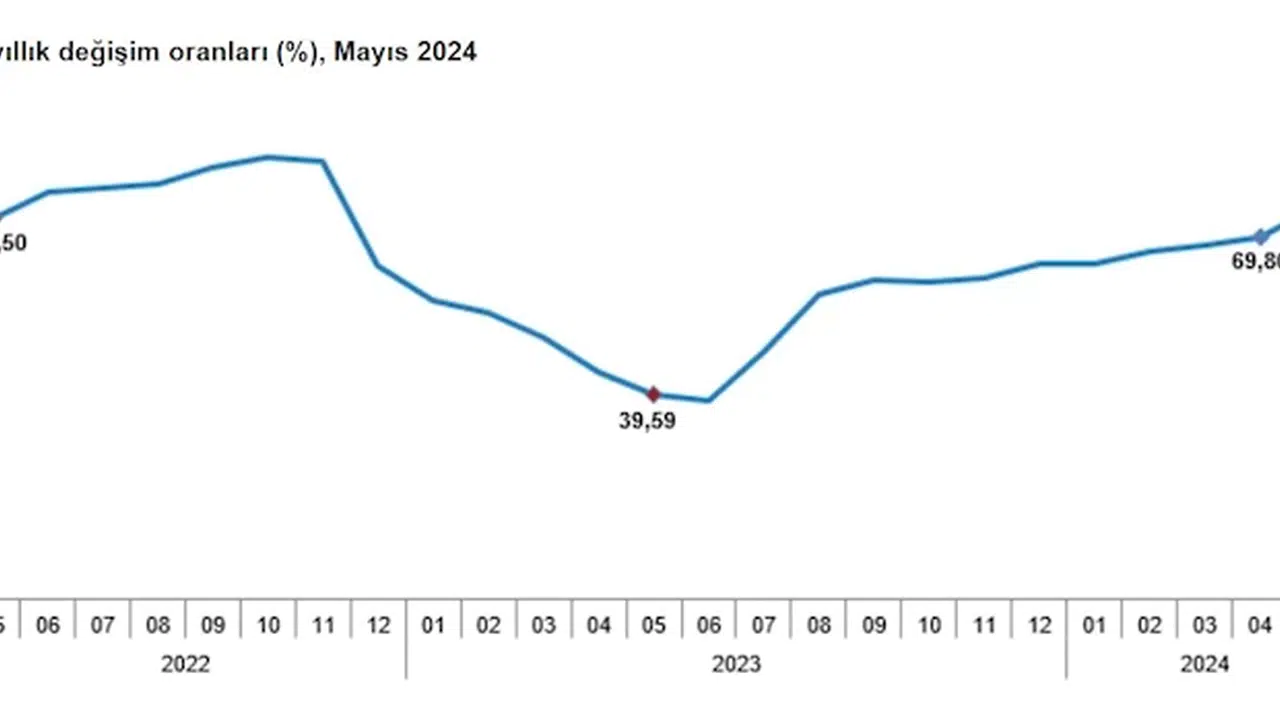 TÜİK, Mayıs 2024 dönemine ilişkin tüketici ve yurt içi üretici fiyat endeksi verilerini açıkladı. Buna göre; TÜFE'deki değişim bir önceki aya göre yüzde 3,37, bir önceki yılın aralık ayına göre yüzde 22,72, bir önceki yılın aynı ayına göre yüzde 75,45 ve 12 aylık ortalamalara göre yüzde 62,51 olarak gerçekleşti. Bir önceki yılın aynı ayına göre en az artış gösteren ana grup yüzde 50,85 ile giyim ve ayakkabı oldu. Buna karşılık, bir önceki yılın aynı ayına göre artışın en yüksek olduğu ana grup ise yüzde 104,80 ile eğitim oldu. Bir önceki aya göre en az artış gösteren ana grup ise 1,01 ile haberleşme oldu. Buna karşılık, bir önceki aya göre artışın en yüksek olduğu ana grup ise yüzde 9,60 ile giyim ve ayakkabı oldu. Endekste kapsanan 143 temel başlıktan 23 temel başlığın endeksinde düşüş gerçekleşirken, 6 temel başlığın endeksinde değişim olmadı. 114 temel başlığın endeksinde ise artış gerçekleşti.