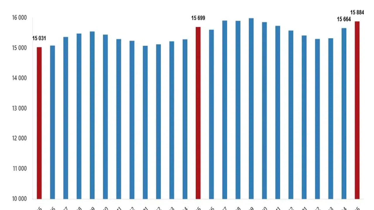 TÜİK, Mayıs 2025 dönemine ilişkin ücretli çalışan istatistiklerini açıkladı. Buna göre; sanayi, inşaat ve ticaret-hizmet sektörleri toplamında ücretli çalışan sayısı bir önceki yılın aynı ayına göre yüzde 1,2 arttı. Ücretli çalışan sayısı bir önceki yılın aynı ayında 15 milyon 698 bin 674 kişi iken, 2025 yılı Mayıs ayında 15 milyon 883 bin 683 kişi oldu. Ücretli çalışanların alt detaylarına bakıldığında; 2025 Mayıs ayında ücretli çalışan sayısı yıllık olarak sanayi sektöründe yüzde 3,1 azaldı, inşaat sektöründe yüzde 4,6 arttı ve ticaret-hizmet sektöründe yüzde 2,9 arttı.