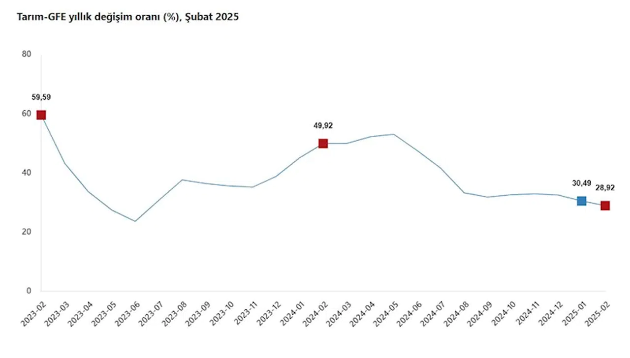 TÜİK, Şubat 2025 dönemine ilişkin tarımsal girdi fiyat endeksi verilerini açıkladı. Buna göre; tarımsal girdi fiyatları bir önceki aya göre yüzde 2,35, bir önceki yılın aynı ayına göre yüzde 28,92 ve 12 aylık ortalamalara göre yüzde 37,78 arttı.