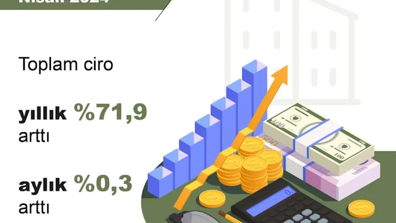 TÜİK, Nisan 2024 dönemine ilişkin ciro endekslerini açıkladı. Buna göre; sanayi, inşaat, ticaret ve hizmet sektörleri toplamında ciro endeksi 2024 Nisan'da yıllık yüzde 71,9 arttı. Toplam cironun alt detaylarına bakıldığında, yıllık sanayi sektörü ciro endeksi yüzde 62,4, inşaat ciro endeksi yüzde 78,4, ticaret ciro endeksi yüzde 72,7, hizmet ciro endeksi yüzde 88,1 arttı.