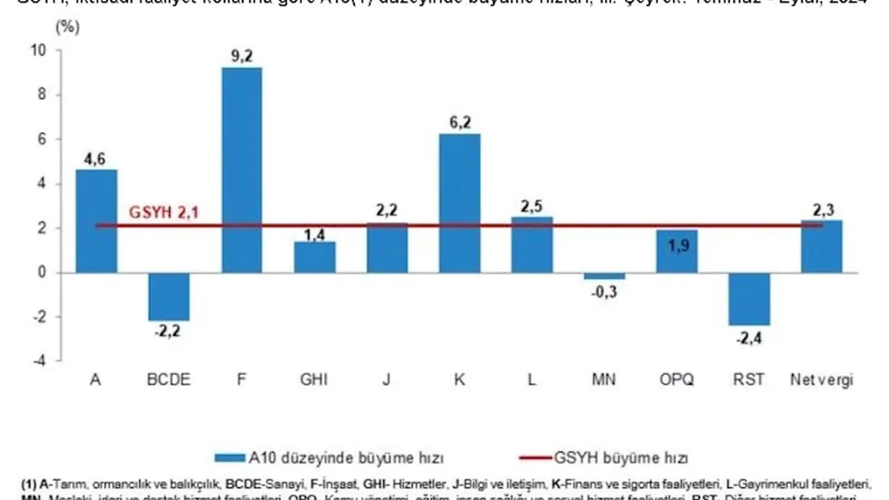 Caner ÜNVER/ANKARA, (DHA)- TÜRKİYE İstatistik Kurumu (TÜİK), Türkiye ekonomisinin 2024 yılının 3'üncü çeyreğinde bir önceki yılın aynı çeyreğine göre yüzde 2,1 büyüdüğünü açıkladı.