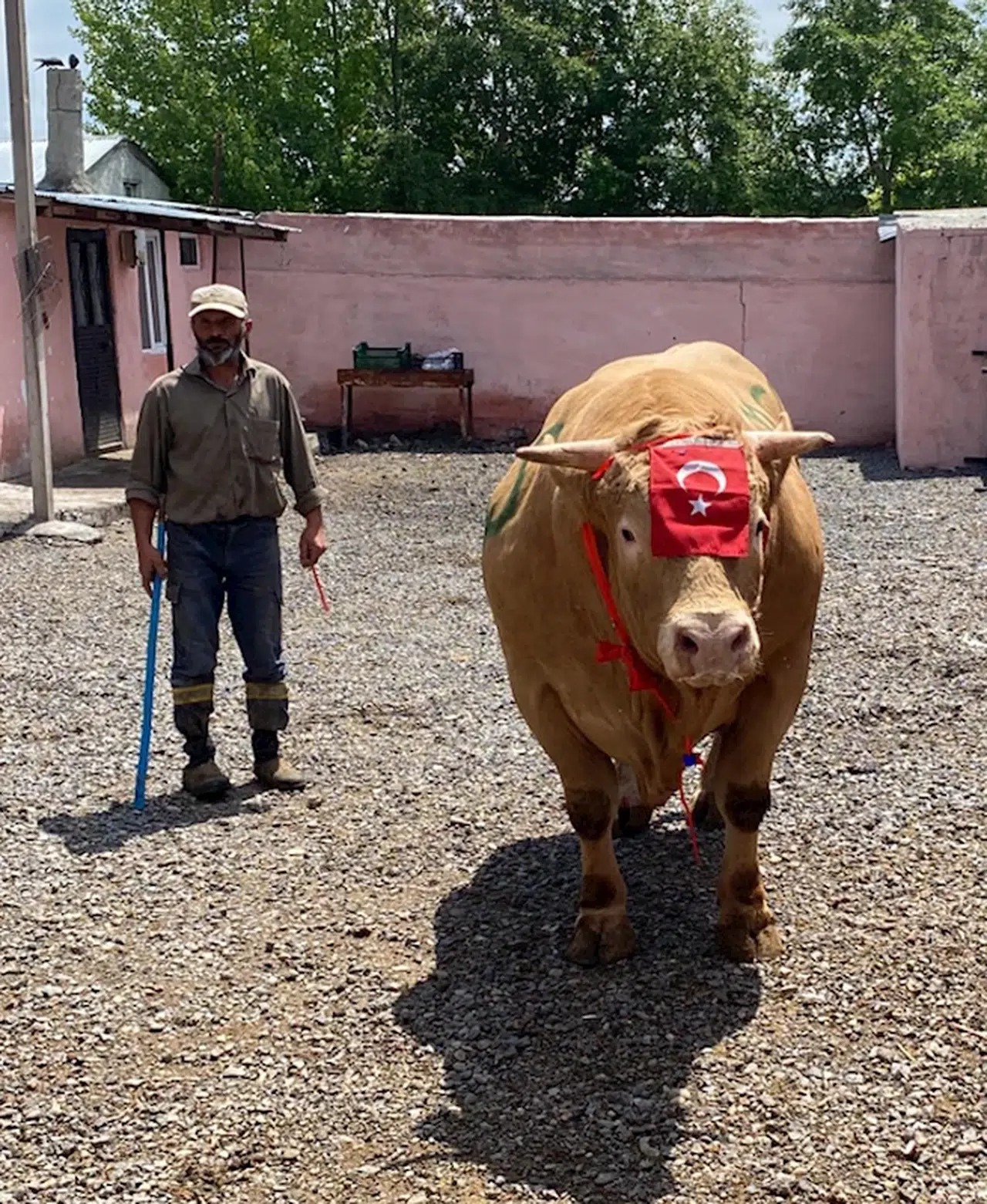 Kars merkeze bağlı Kümbetli köyünde besicilik yapan Erol Çolak, 2 yıl önce besiye aldığı ve 'Şahmurat' ismini verdiği Fransız Şarole ırkı boğayı, Kurban Bayramı için satışa çıkardı. 2 yıl süreyle özenle bakılan ve 1 ton 150 kilograma ulaşan boğayı iş insanı Kenan Kılıç, 300 bin lira ödeyerek aldı. Boğayı 2 yıldır özenle beslediğini söyleyen besici Çolak, günlük 30 kilogram yem tükettiğini kaydetti.