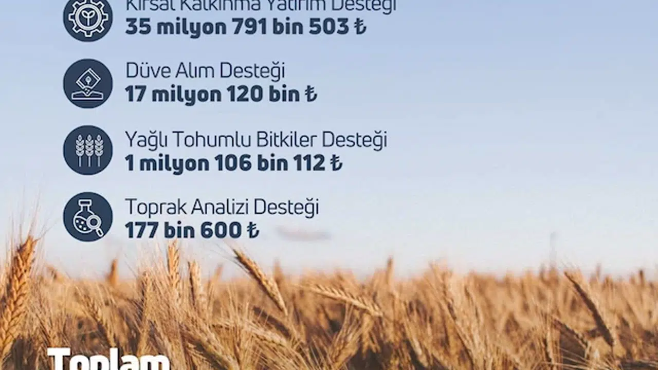 Bakanlığın sosyal medya hesabından yapılan açıklamada, "Hububat-baklagil ve dane mısır desteği 64 milyon 910 bin 785 lira, kırsal kalkınma yatırım desteği 35 milyon 791 bin 503 lira, düve alım desteği 17 milyon 120 bin, yağlı tohumlu bitkiler desteği 1 milyon 106 bin 112 lira, toprak analiz desteği 177 bin 600 lira olmak üzere toplamda 119 milyon 106 bin TL tarımsal destekleme ödemesini çiftçilerimizin hesaplarına aktardık" denildi. (DHA)