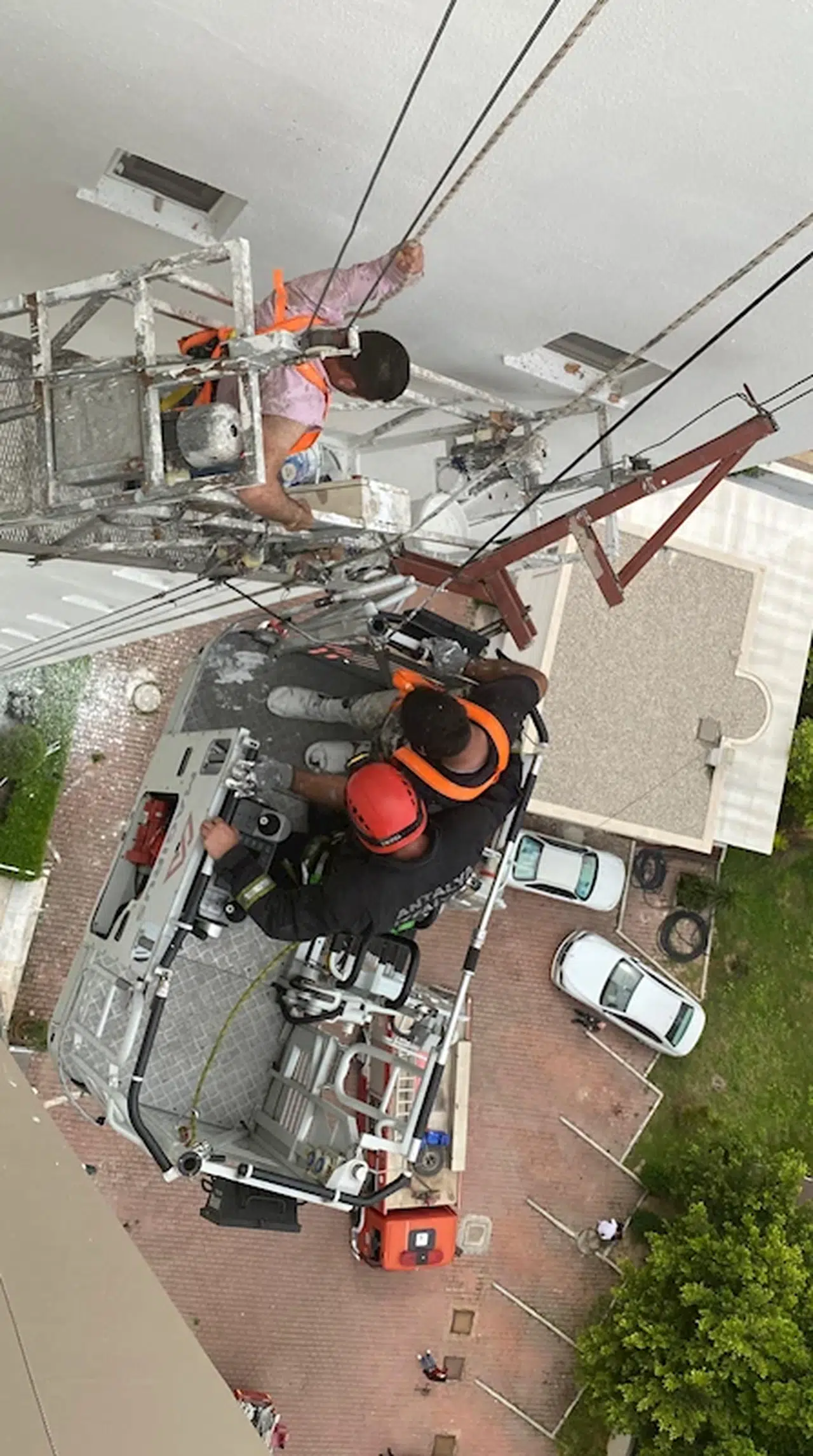 Adem AKALAN/ANTALYA, (DHA)- ANTALYA'da apartmanın 12'nci katında dış cephe boyaması yaparken duvarın bir kısmının yıkılması sonucu asılı kalan iskeledeki Sedat Karaca ve Ömer Karayaluk, itfaiye merdiveni ime kurtarıldı.