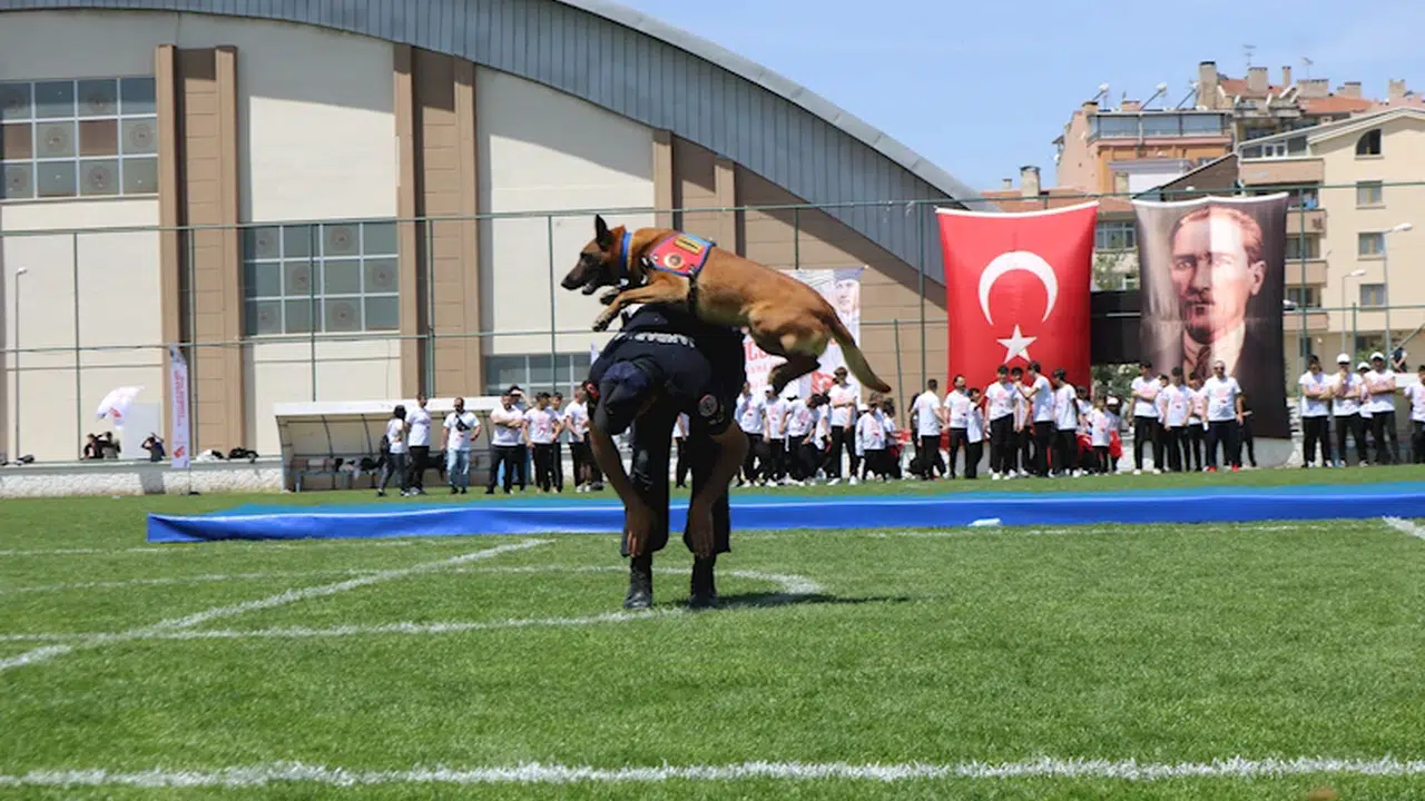 Ahmet KORKMAZER/NEVŞEHİR, (DHA)-NEVŞEHİR'de 19 Mayıs kutlamaları kapsamında Jandarma At ve Köpek Eğitim Merkezi'nin (JAKEM) eğitimli köpeği 'Nefes'in gösterisi, ilgiyle takip edildi.