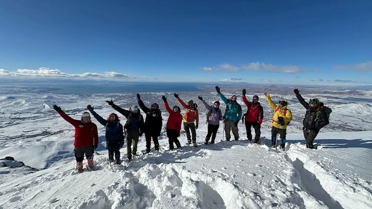 Van ve çevresinde yağan kar yağışı sonrası araçlarla sabah saatlerinde Kevenli Mahallesi'ne giden Vadi Doğa Sporları Arama Kurtarma Spor Kulübü üyesi 18 dağcı, buradan 2 bin 800 rakımlı Küçük Erek Dağı’nın zirvesine çıkmak üzere hareket etti. Yaklaşık 4 saatlik zorlu yolculuk sonrasında karlı zirveye ulaşan dağcılar, fotoğraf çektikten sonra yeniden inişe geçti. Vadi Doğa Spor Kulübü Başkanı Ömer Demez, hava sıcaklığının sıfırın altında 8 dereceye kadar düştüğü bölgede zorlu bir tırmanış gerçekleştirdiklerini belirterek, "Küçük Erek Dağı’na yolculuğumuz hem zorlu hem keyifli geçti. Zirveden Van'ı izledik. O muhteşem manzarada bol bol fotoğraf çektik" dedi. (DHA)