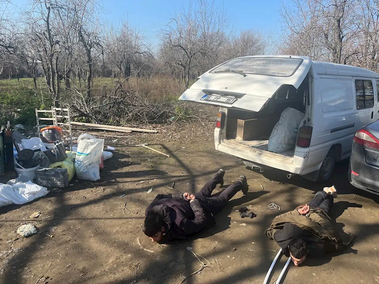 Yıldırım İlçe Emniyet Müdürlüğü Suç Önleme ve Soruşturma (SÖS) Büro Amirliği ekipleri, 22 Şubat’ta, Yiğitler Mahallesi'nde, M.K.’ye (37) ait, park halindeki 16 CND 12 plakalı otomobilin çalındığı ihbarıyla harekete geçti. Otomobil aynı gün Oto Sanayi Sitesi’nin (OTOSANSİT) üst tarafındaki parkta terk edilmiş halde bulunurken, 2 gün sonra Güllük Mahallesi’nde V.K.’ye (41) ait 16 PP 161 plakalı minibüsün çalındığı ihbarı geldi. Her 2 bölgedeki güvenlik kamerası görüntülerini inceleyen polis ekipleri, şüphelilerin, 23 suç kaydı bulunan ve ‘Silahla, birden fazla kişi ile birlikte konutta geceleyin yağma’ suçundan 16 yıl 10 ay kesinleşmiş hapis cezasıyla aranan Maşallah S. (21) ile 17 suç kaydı bulunan Ahmet Can D. (21) olduğunu belirledi. Şüpheliler, 24 Şubat’ta saat 15.00 sıralarında, çaldıkları minibüsle Şirinevler Mahallesi 11 Eylül Bulvarı'nda seyir halindeyken takiple yakalanıp gözaltına alındı. (DHA)