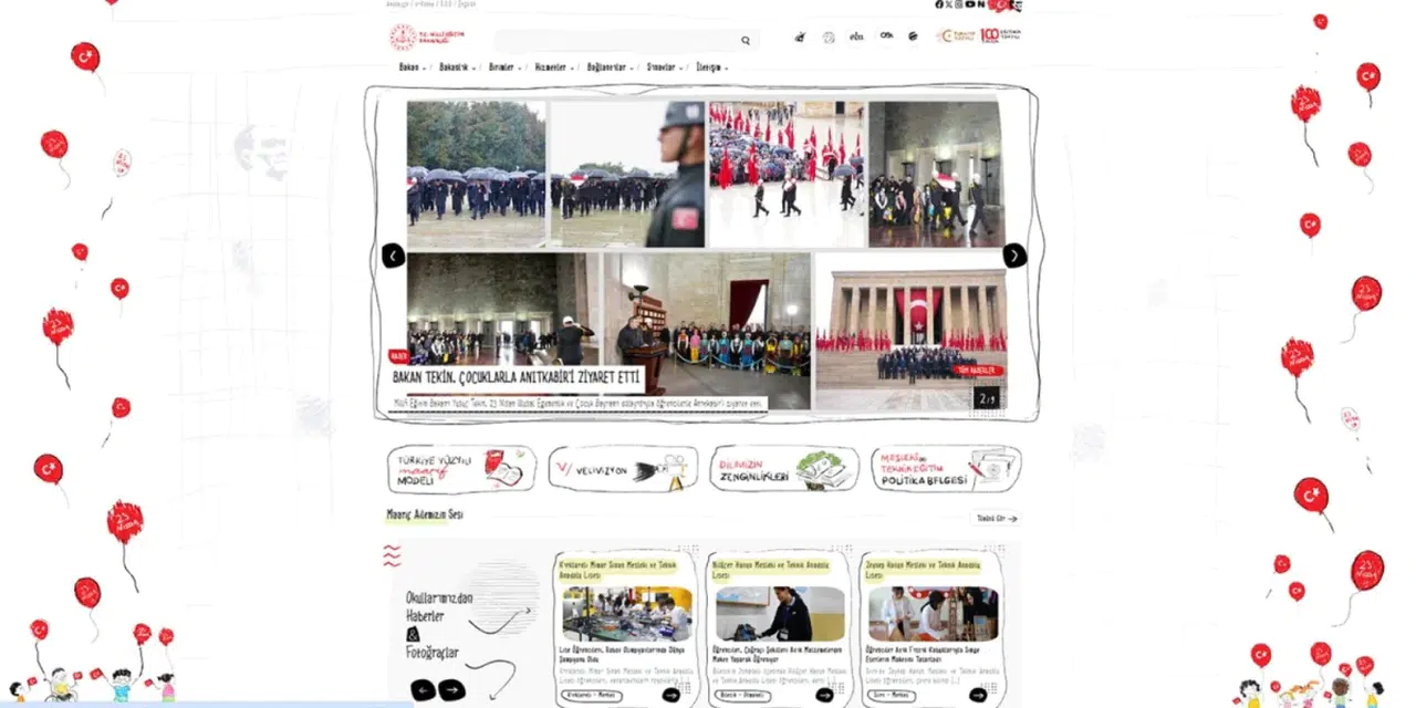 Millî Eğitim Bakanlığı resmî internet sitesi "meb.gov.tr", 23 Nisan Ulusal Egemenlik ve Çocuk Bayramı kapsamında çocuklara özel tasarım ve görsellerle güncellendi.