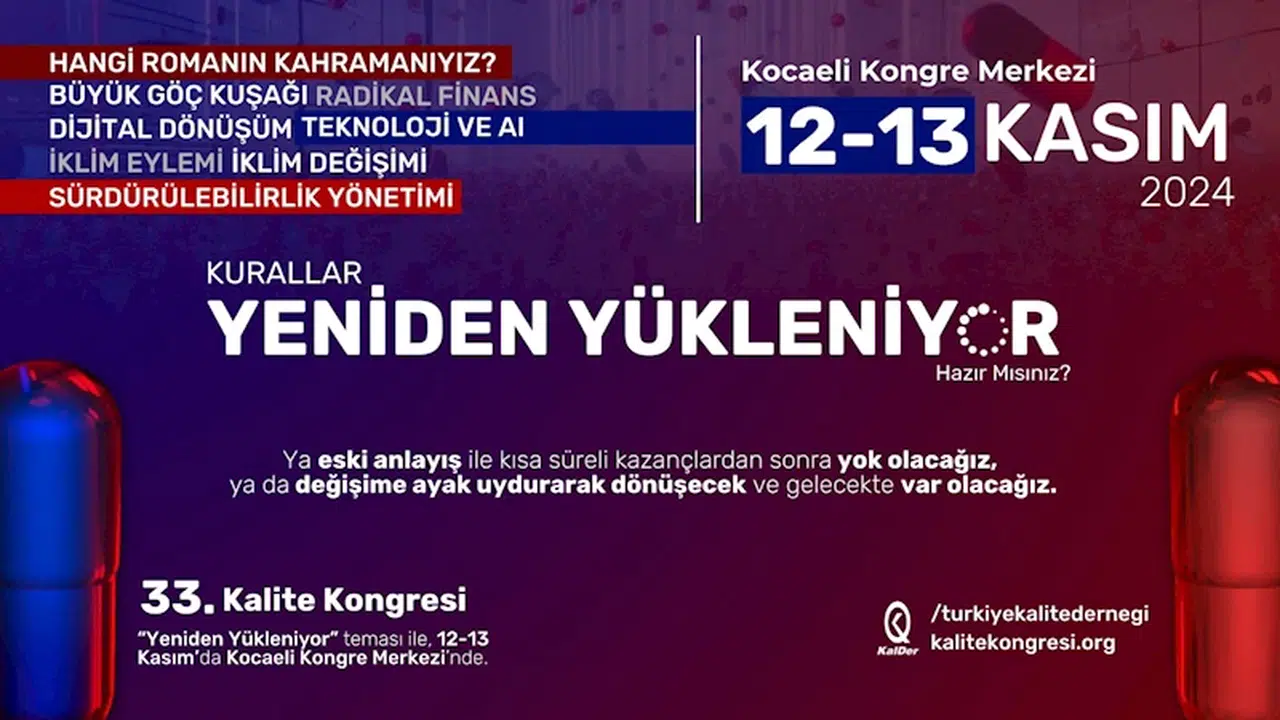İSTANBUL, (DHA)- TÜRKİYE Kalite Derneği (KalDer) tarafından her yıl düzenlenen, Kalite Kongresi’nin 33’üncüsü 12-13 Kasım tarihlerinde 'Yeniden Yükleniyor’ teması ile Kocaeli Kongre Merkezi’nde gerçekleşecek. Kongrede, iş dünyasının temel ihtiyaç ve beklentileri ile şekillenen konular ele alınacak.