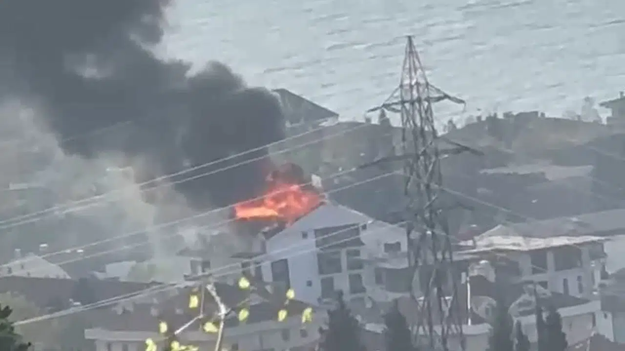 Nazım Özgün ERBULAN/KARAMÜRSEL (Kocaeli), (DHA)- KOCAELİ’nin Karamürsel ilçesinde 4 katlı apartmanın çatısı alev alev yandı. İtfaiyenin yaklaşık yarım saatlik çalışması sonucu yangın kontrol altına alınırken, çatıda hasar meydana geldi.