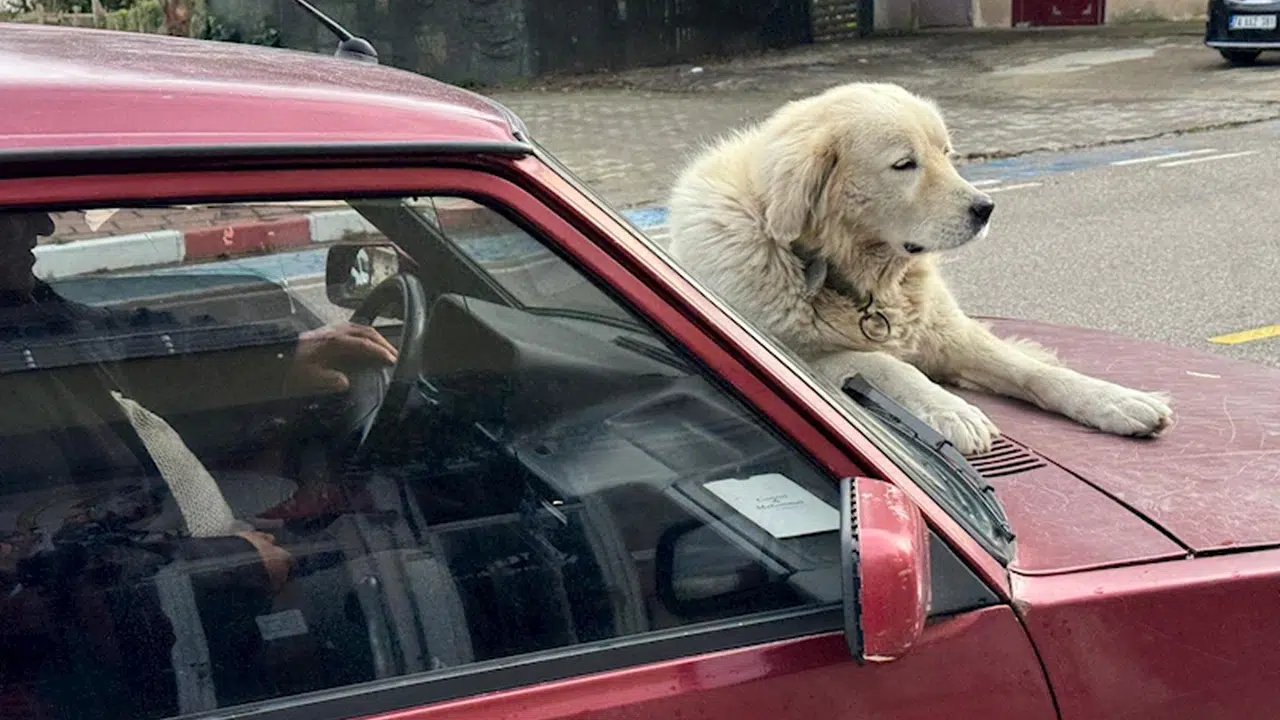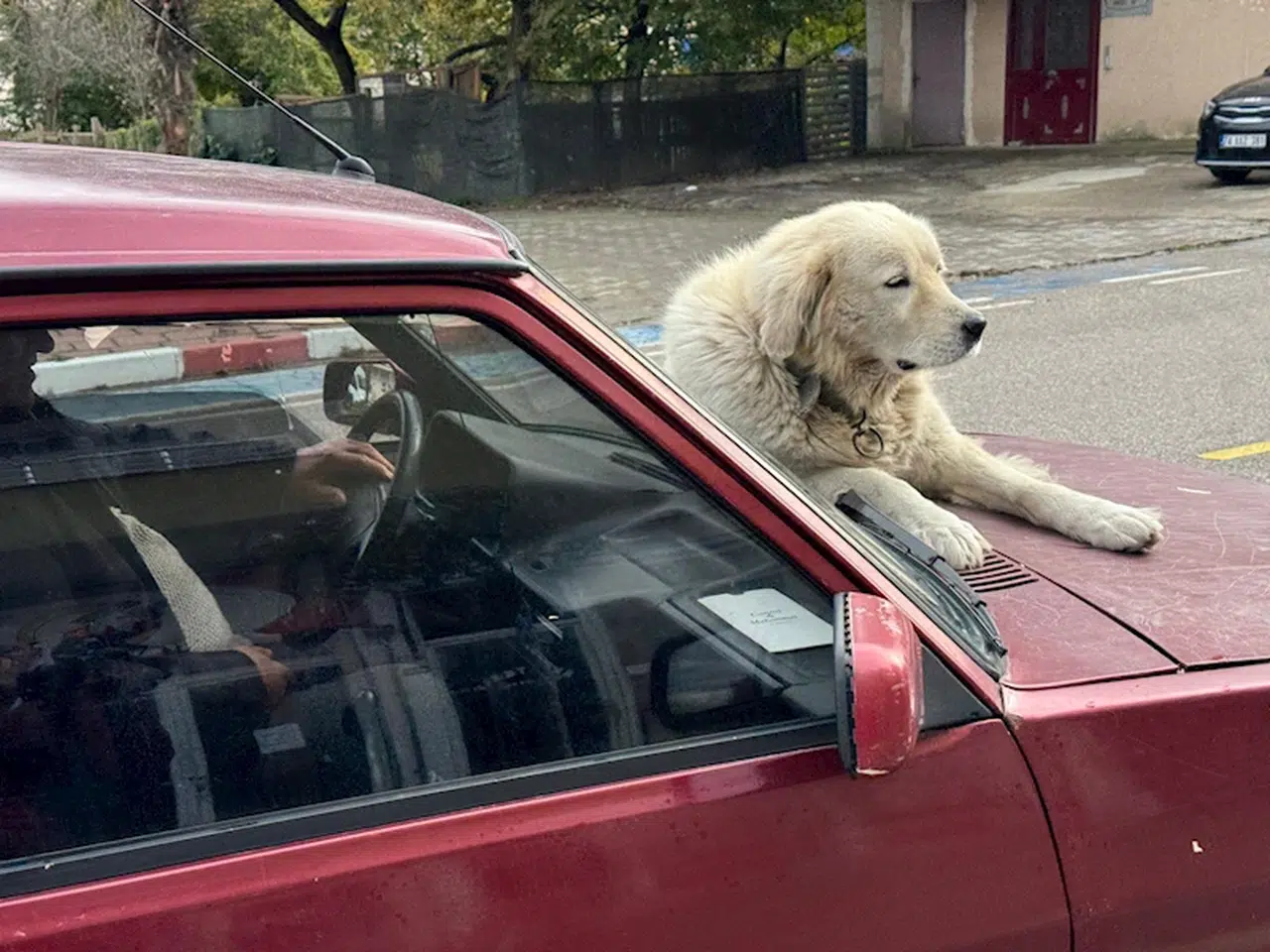 4 yıl önce sahiplendiği ‘Binnaz’ı, otomobilin üzerinde gezdiriyor