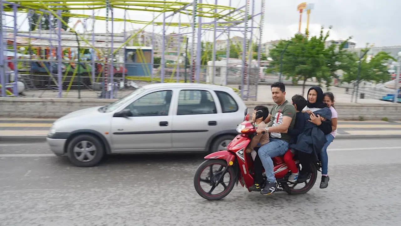 Büyük Bölcek Mahallesi Şehit Polis Yavuz Bayal Caddesi'nde 4'ü çocuk 6 kişinin yağmurlu havada motosikletle trafikte seyretmesi dikkat çekti. Çocuklardan birinin önde diğerinin arkada, bir bebeğin annesinin kucağında diğer çocuğun ise ortada olduğu yolculukta motosiklettekilerin kasklarının olmadığı da görüldü. (DHA)