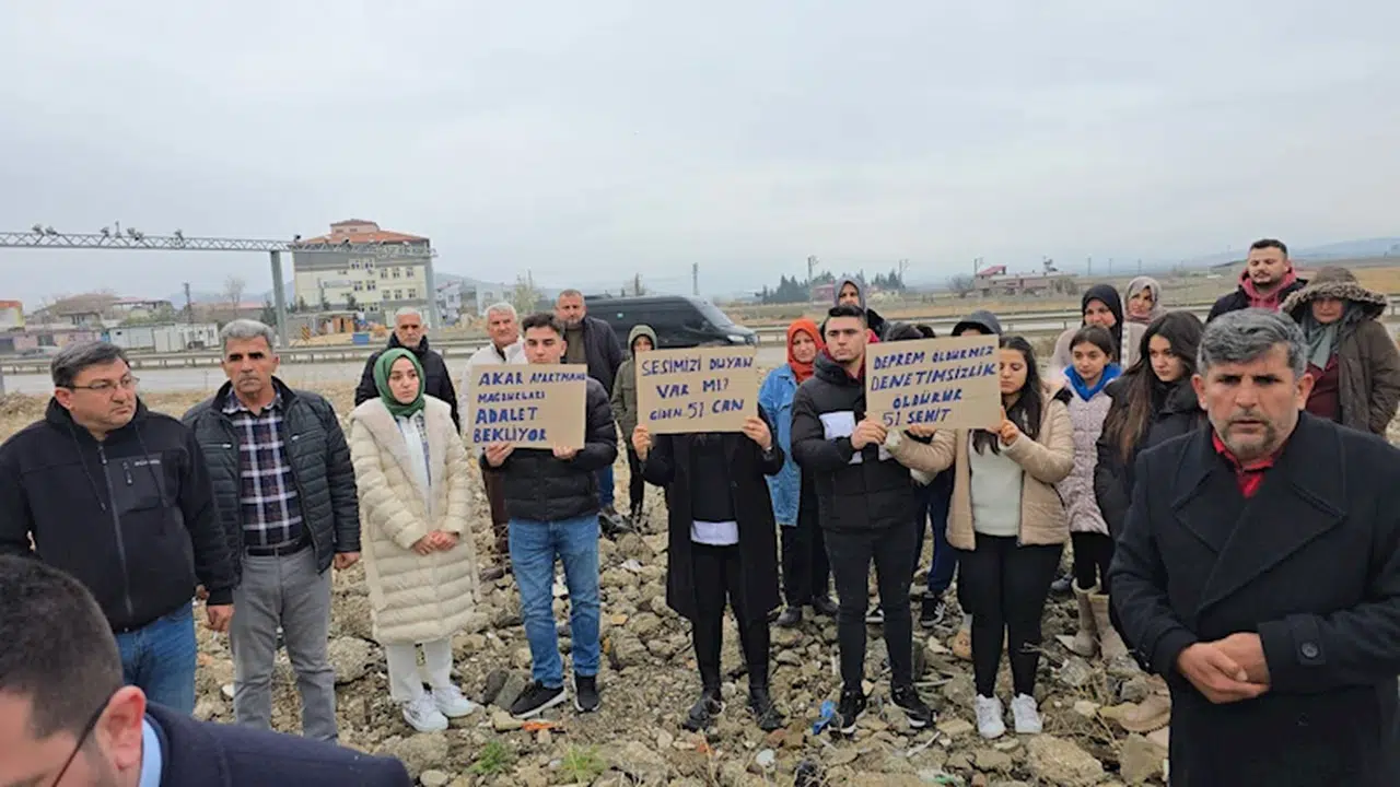 Kadir ÇELİK/İSLAHİYE (Gaziantep), (DHA)-KAHRAMANMARAŞ merkezli depremlerde yıkılan, 51 kişinin hayatını kaybettiği Gaziantep'in İslahiye ilçesindeki Akar ve Güven apartmanlarının müteahhidi Mesut Akar'ın tahliye edilmesine, aileler tepki gösterdi. Avukat Abdullah Yalçın, "Sanığın tahliye edilmesi hukuka, ahlaka ve adalete olan güveni sarsmıştır. Bu durumdan dönülmesi lazım" dedi.