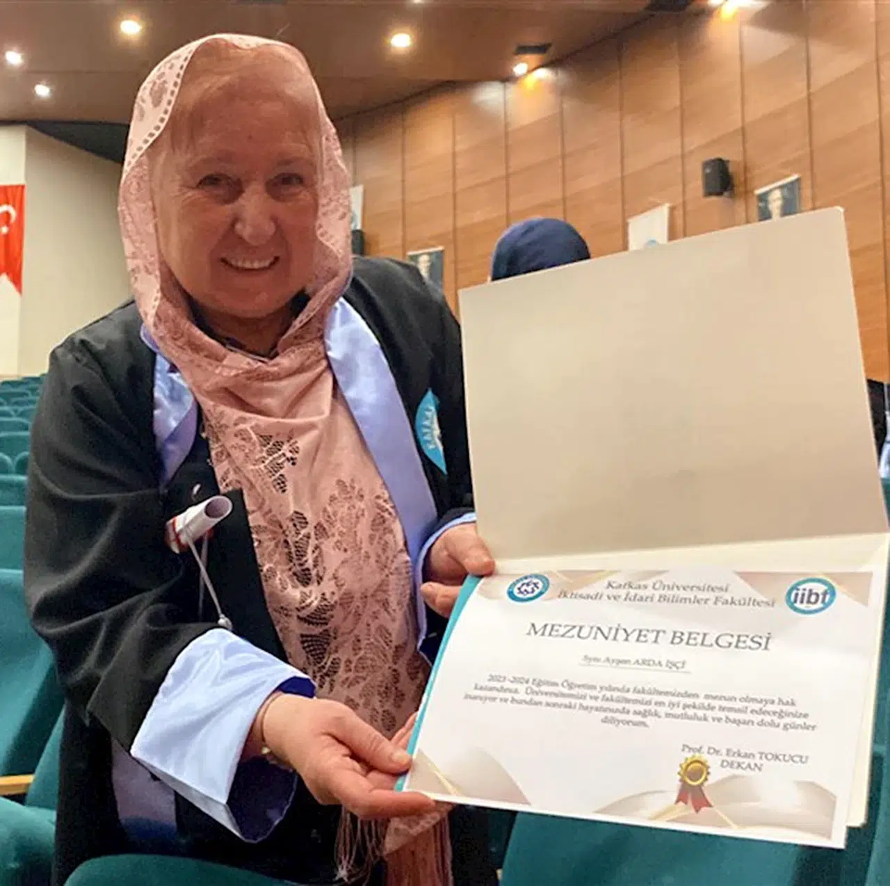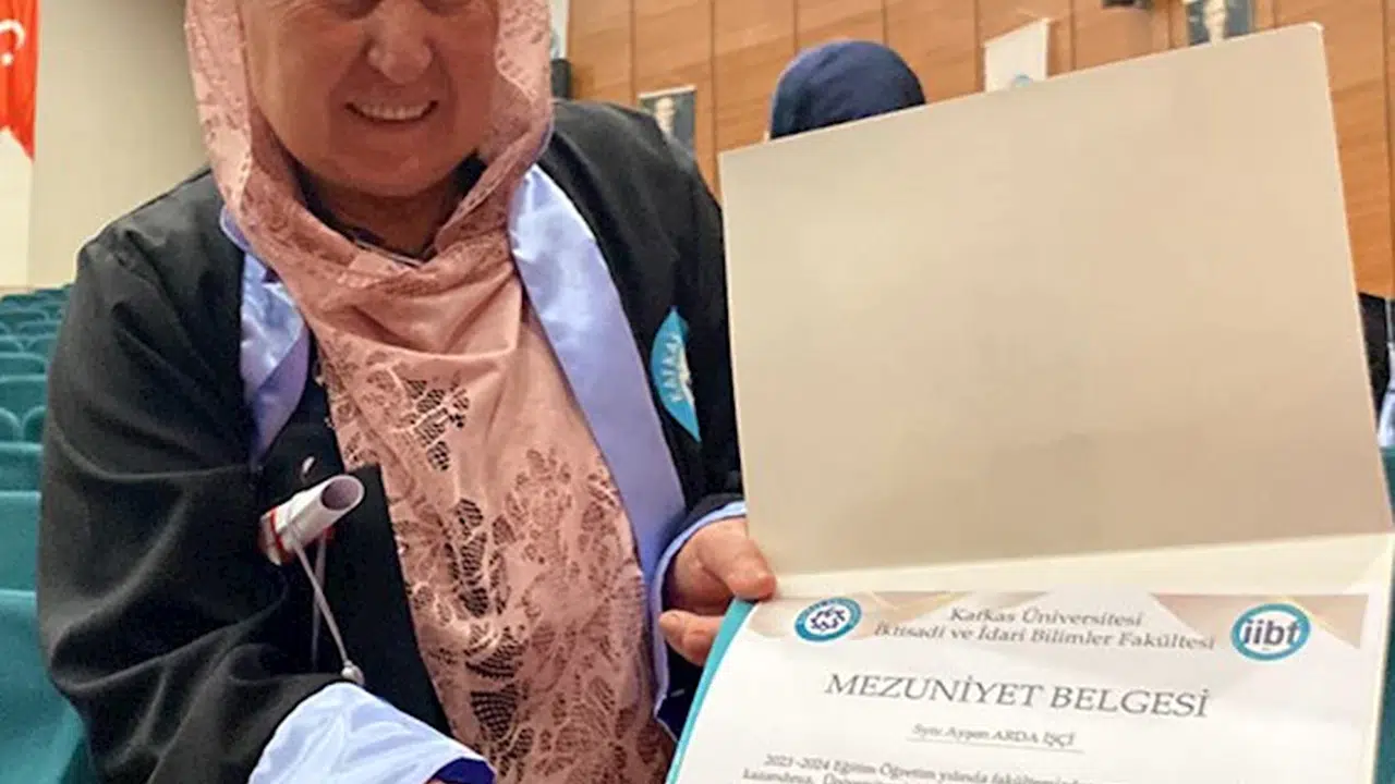 "Bundan 15 yıl önce geldiğim Kars'ın özellikle kırsalında genç kızların ekonomik olarak özgürlüklerinin fazla olmadığını görerek bir kooperatif oluşumuna girdim. Halk eğitimlerde kurslar verdik kendimde açık liseden eğitimime devam ettim. Birçok kızımızı da açık liseden okula kaydettirdim. Ardından üniversite serüvenim başladı. Üniversitede de özellikle siyaset bilimi ve uluslararası ilişkiler okumak istedim. Geleceğini tahmin etmiyordum ama kendime güveniyordum. Nitekim istediğim bölüm de geldi. Kafkas Üniversitesi zaten birinci tercihimdi. Dört yıl nasıl geçti anlayamadım. Kar, buz, tipi altında Selim'in Cavlak köyünden üniversiteye her gün 2.5 saat geldim 2.5 saat geri gittim. 'Yapamazsın, beceremezsin, karda-buzda gidip gelemezsin' dediler bende dedim ki 'Rabbim bana bu fırsatı verdi, devletim de benim okumam için yolu açtı yürüyerek de olsa giderim.' Güzel bir şekilde üniversiteyi bitiririm. Mezun olmanın heyecanını yaşıyorum. Gayet de güzel notlarla mezun oldum. Arkamdan gelecek birçok gence de rol model olduğuma inanıyorum. Akranlarımın da oturup ölümü beklemeyeceklerine tüm kalbimle inanıyorum. Eylül ayında da kısmetse yüksek lisansa başlıyorum. İnanıyorum ki yaradan nasip ettiği sürece daha güzel şeyler olacak. Şu anda 69 yaşındayım. Zaten kendime dedim ki '70, 71 yaşımda yüksek lisansı da bitiririm' Eğer yaşarsam daha devamını da getiririm."